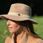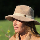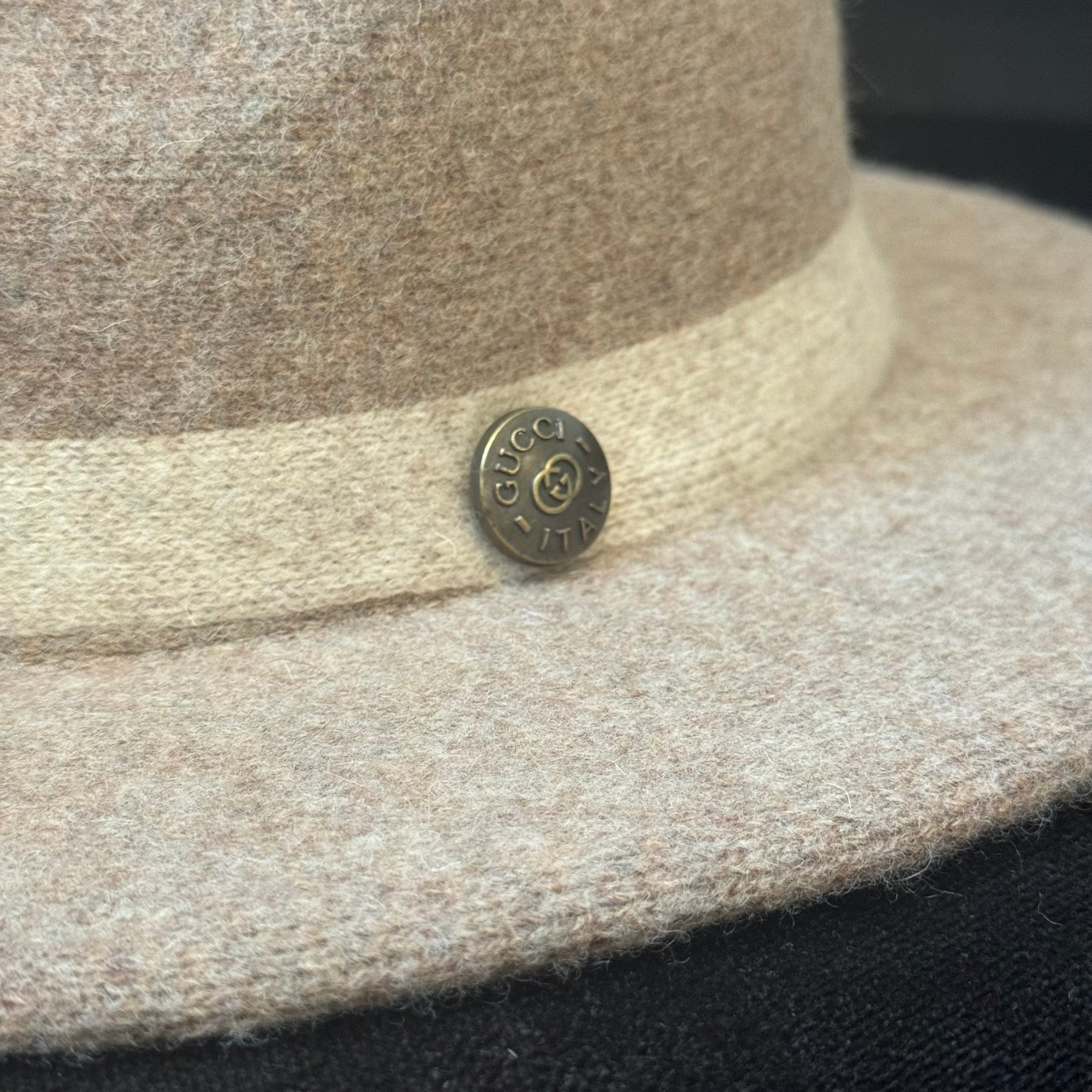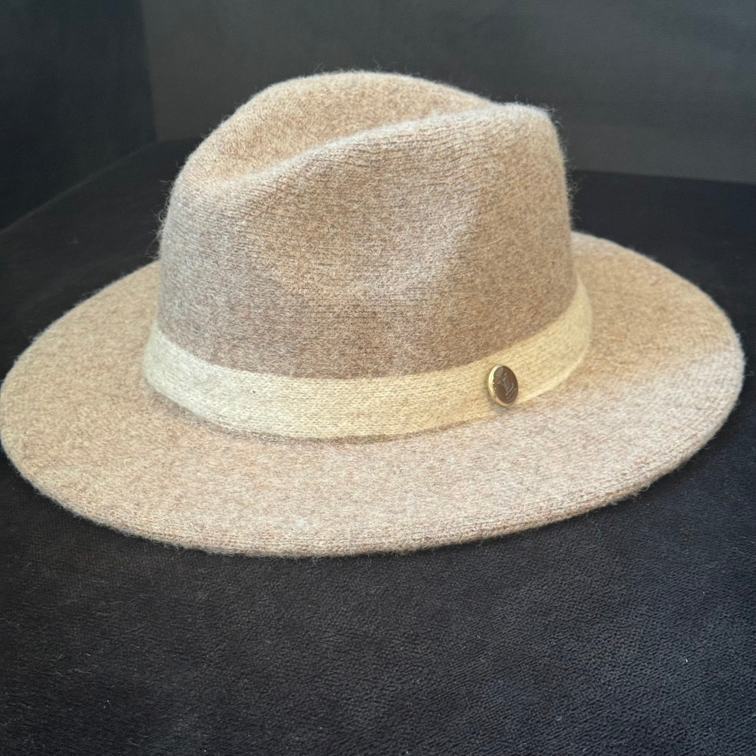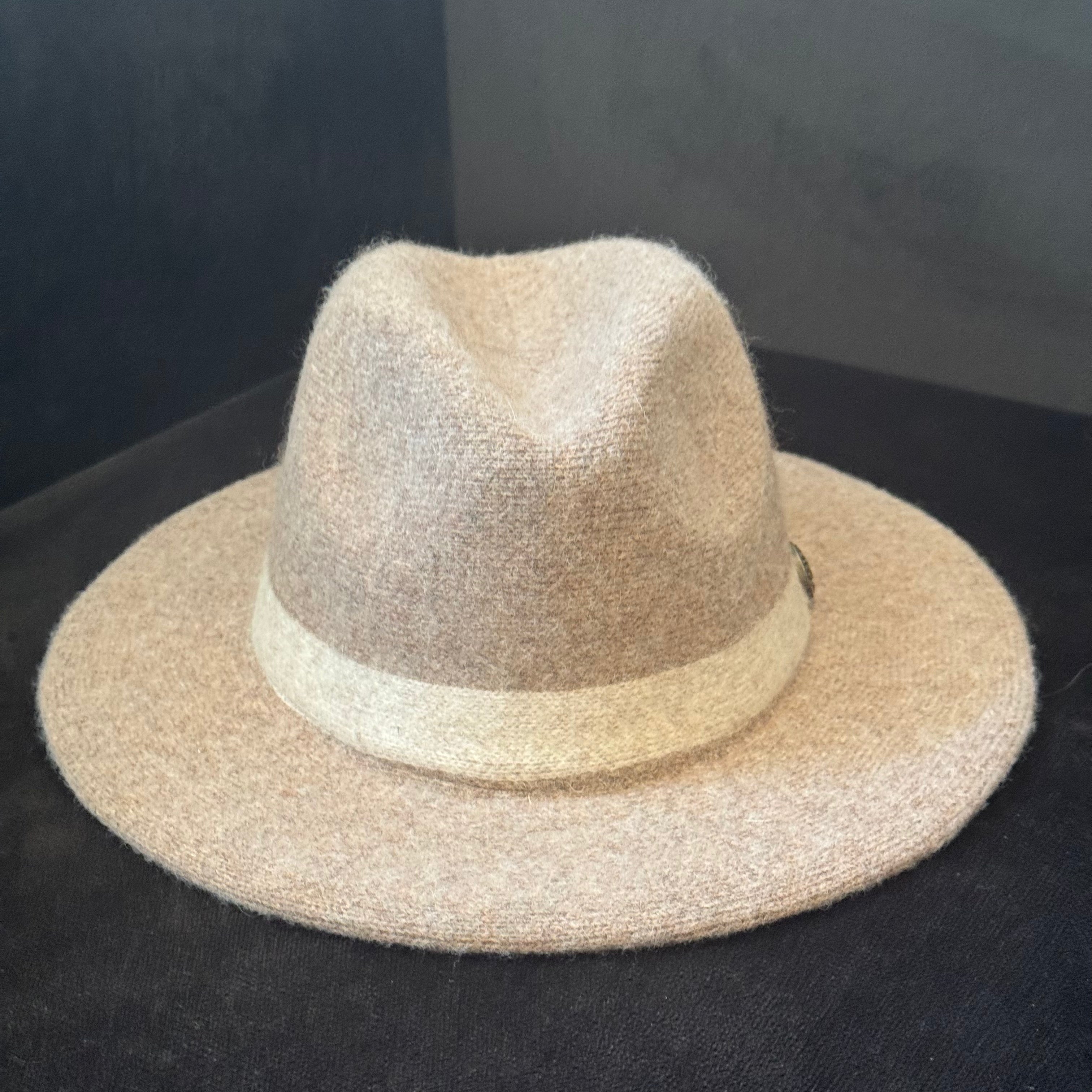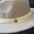 DTD Taupe Fedora with Light Beige Trim & Designer Button