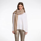 Tonal woven scarf in Oat This scarf features faux fur details, wide fringed ends and a super soft feel.