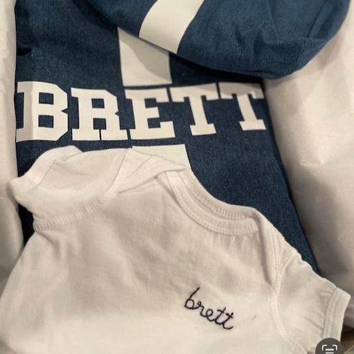 Custom embroider a name or special word on an adorable classic onesie!