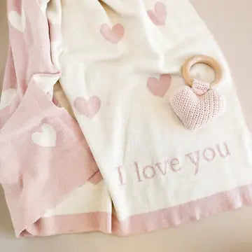 Reversible I LOVE YOU/ HEART Cotton Blanket
