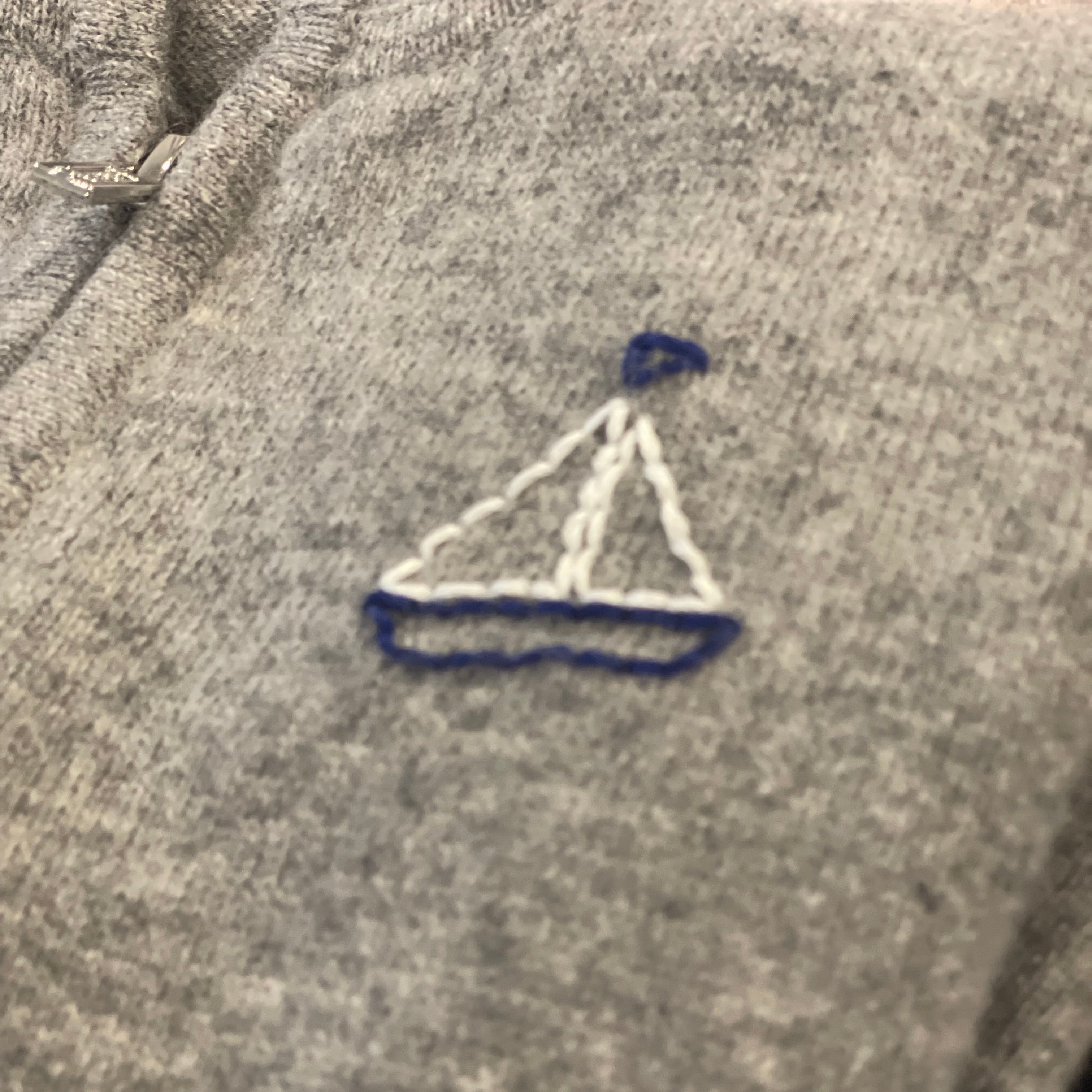 The new Le Fasheri Baby Cashmere line is sold exclusively at Designs That Donate. Wrap your little one in this soft hand embroidered cashmere.  Our zipped hoodie has a hand embroidered boat. Each sweater is made to order. Sweater can be purchased alone, or with matching cashmere joggers, sold separately.