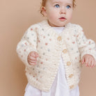 Featuring a cream base, this cardigan's welcoming tiny hearts will have your little one feeling like they're wrapped in your love. Featuring hearts in our colors blush, bose, bowie grey, and mist.