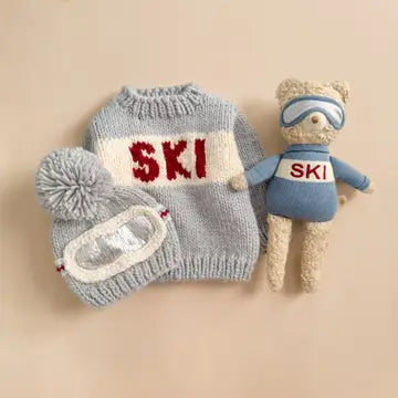 Ski season wouldn't be complete with this ski sweater. Get your little one ready for ski season in this Bowie Grey, Cream, and Red set. Available in other colors. - Designed in Salt Lake City - Crafted with care using 100% Hand-knit Acrylic - Hand wash and lay flat to dry