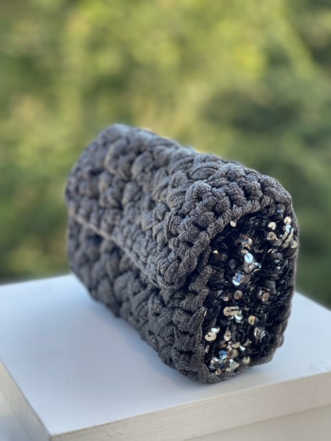 The Dark Silver Lurex & Sequin Flap Bag
