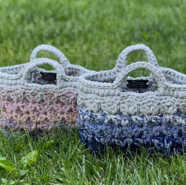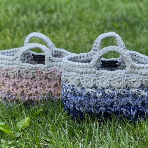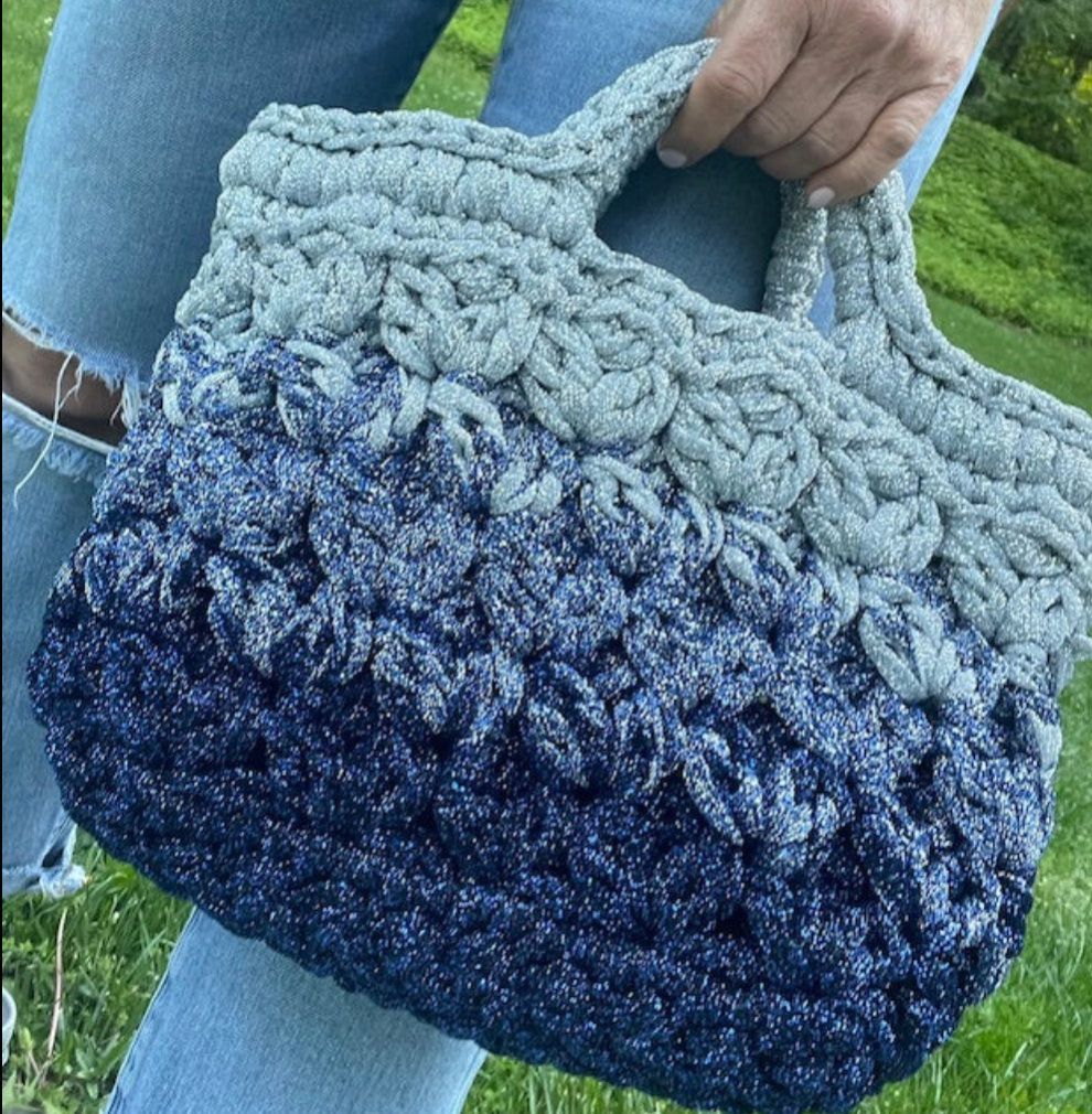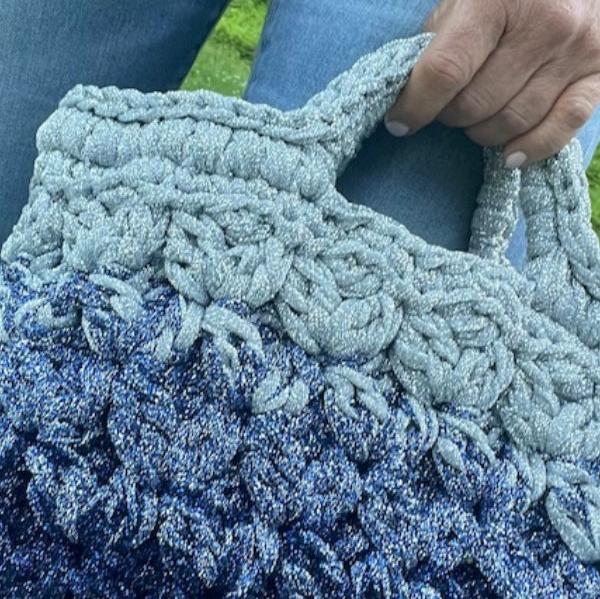 Crocheted Blue & Silver Lurex Lace Basket Bag