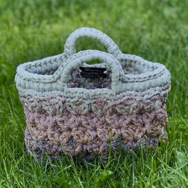 Crocheted Lilac & Silver Lurex Lace Basket Bag