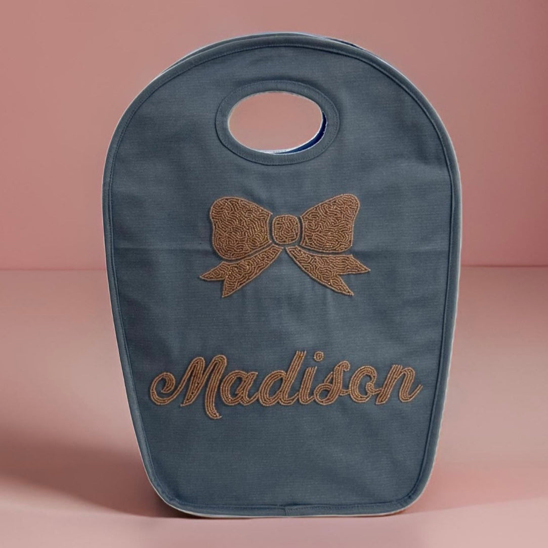 The Veni Bow is handmade with carefully sourced, cut, and colored beads.