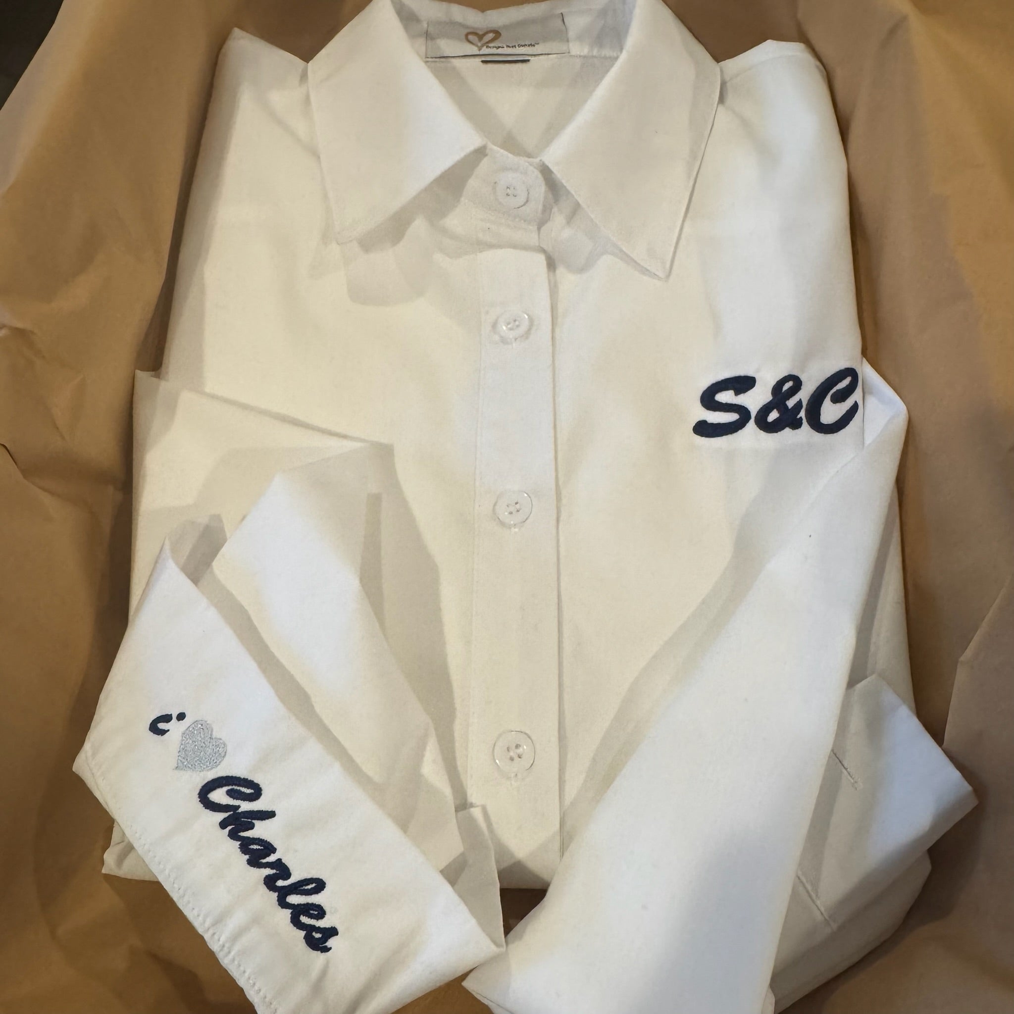 Custom embroidered button down shirts. 100% Cotton.