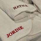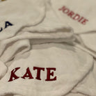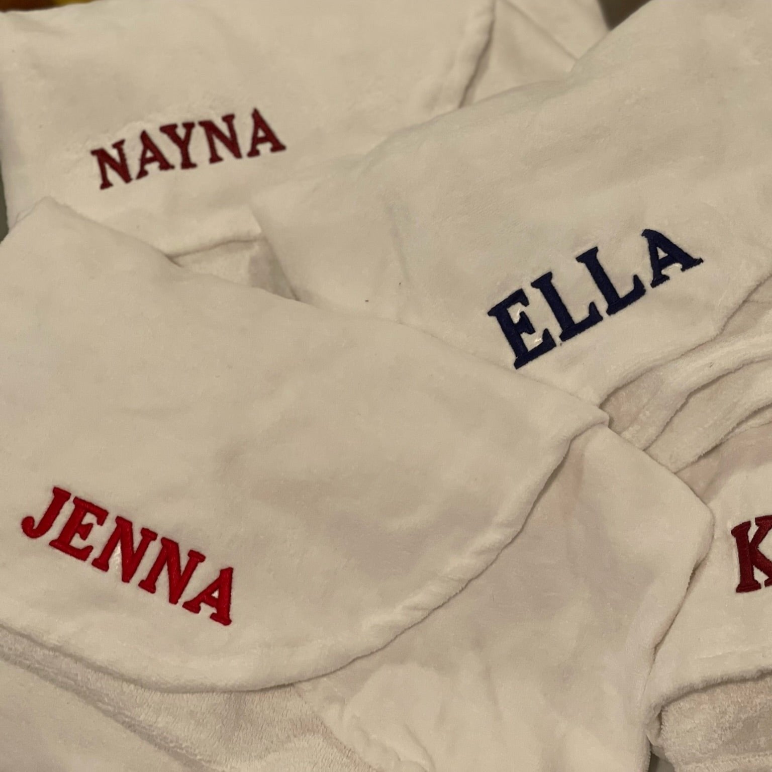 Please specify what you would like embroidered in notes. Please include color of embroidery and block/script.