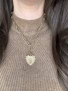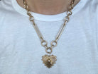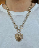 Custom Yellow Gold Fluted Heart Charm and Link Necklace