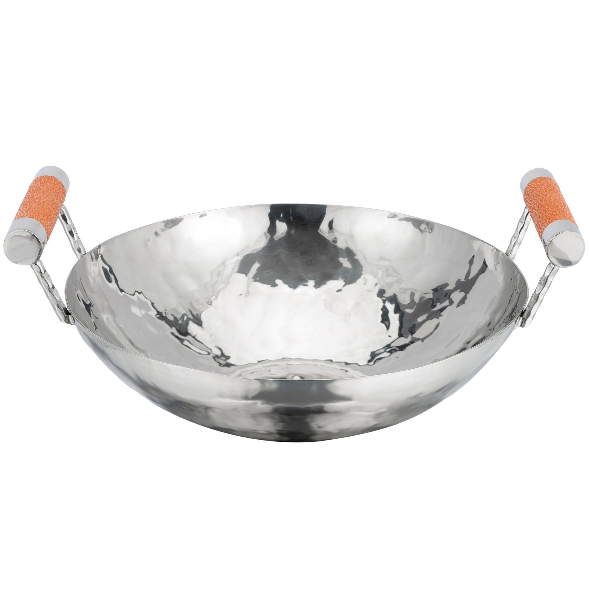 Hand made, hammered stainless steel round bowl. Custom genuine shagreen covered inlay handles. Dimensions: 12"x12"