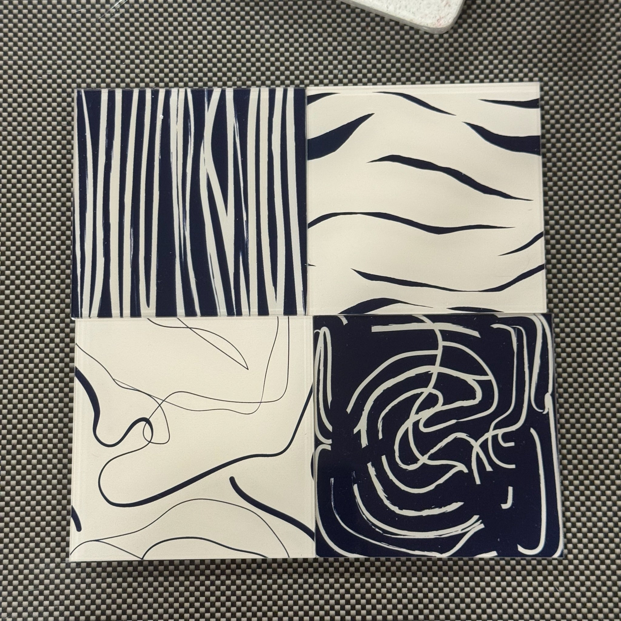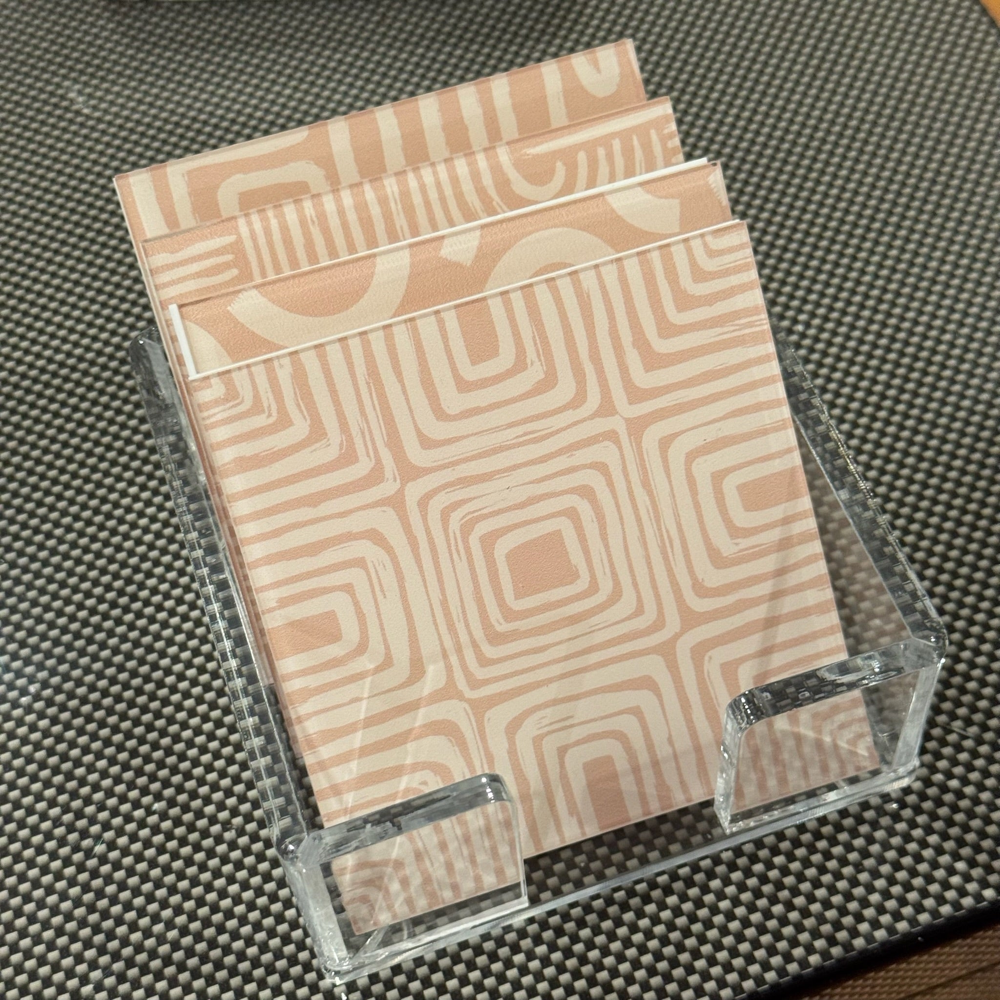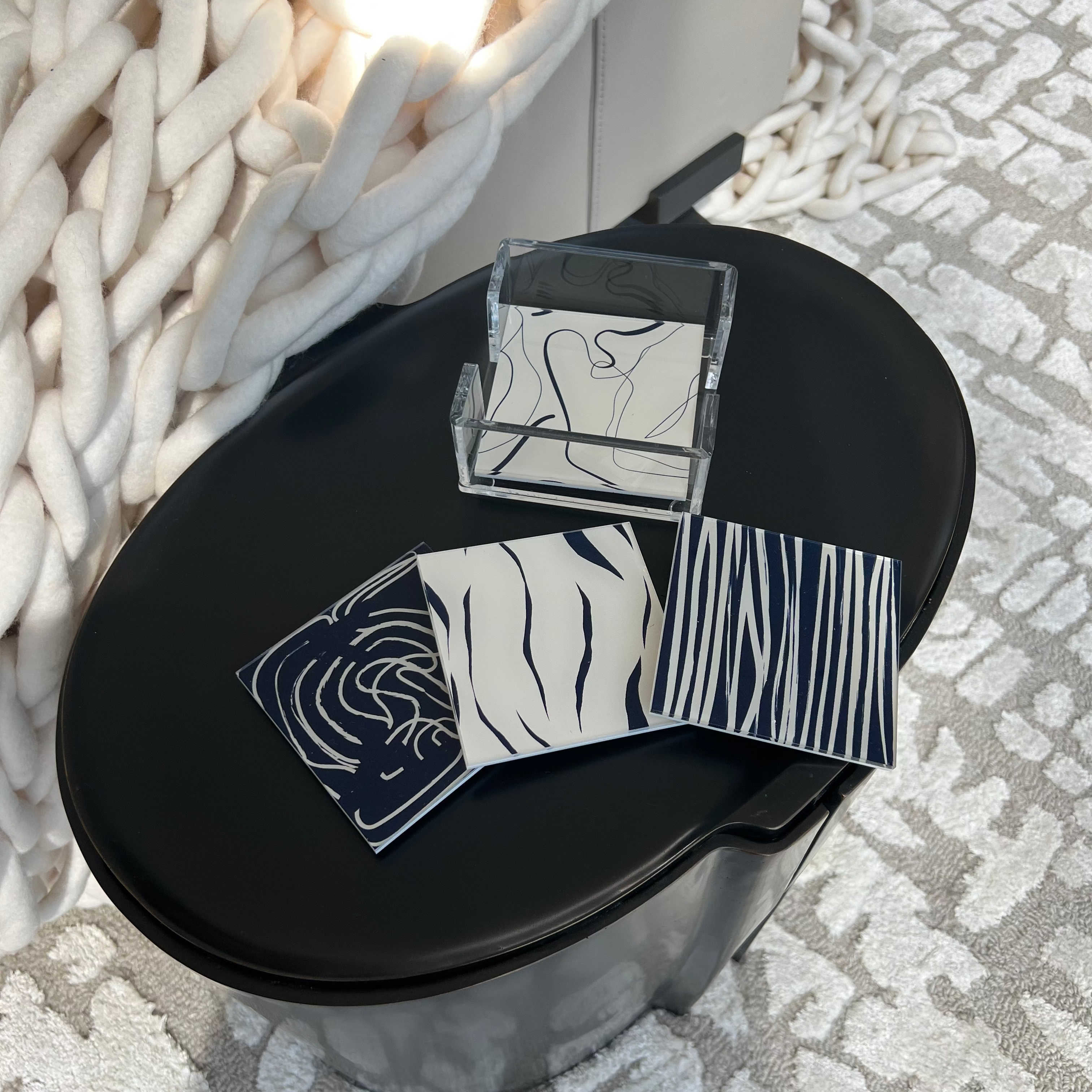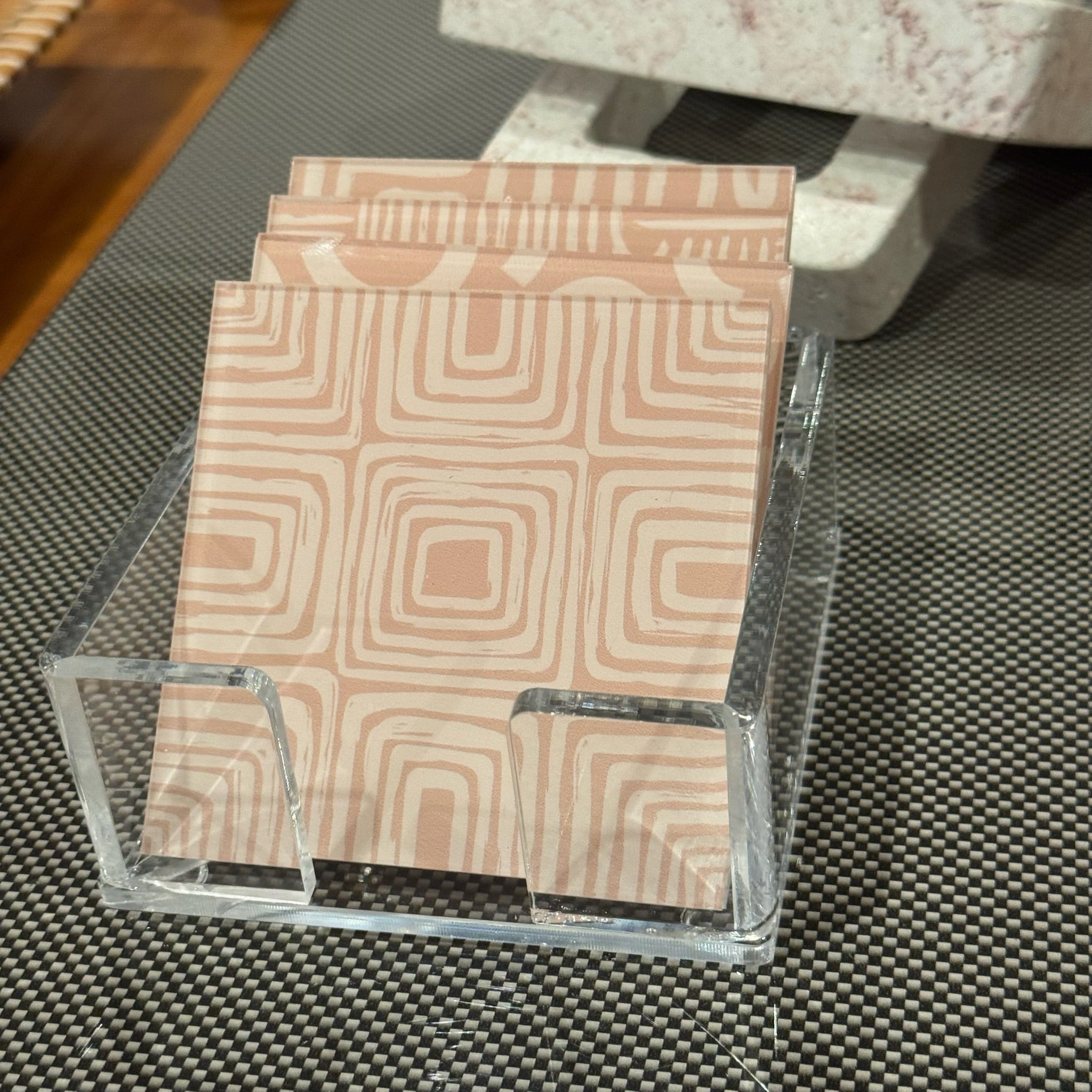4 piece Acrylic Coaster Set. Includes clear acrylic base with 2 slot design.