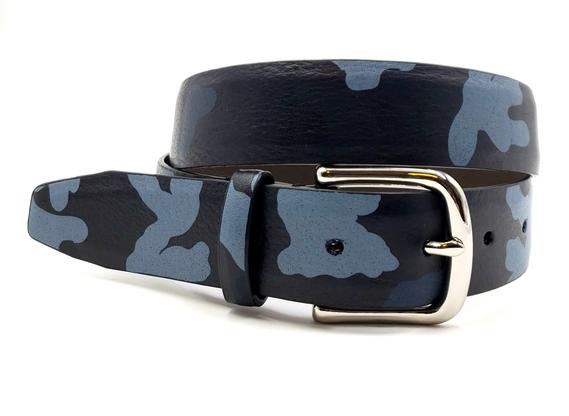 FH Wadsworth Men's Blue Leather Camouflage Print Belt
