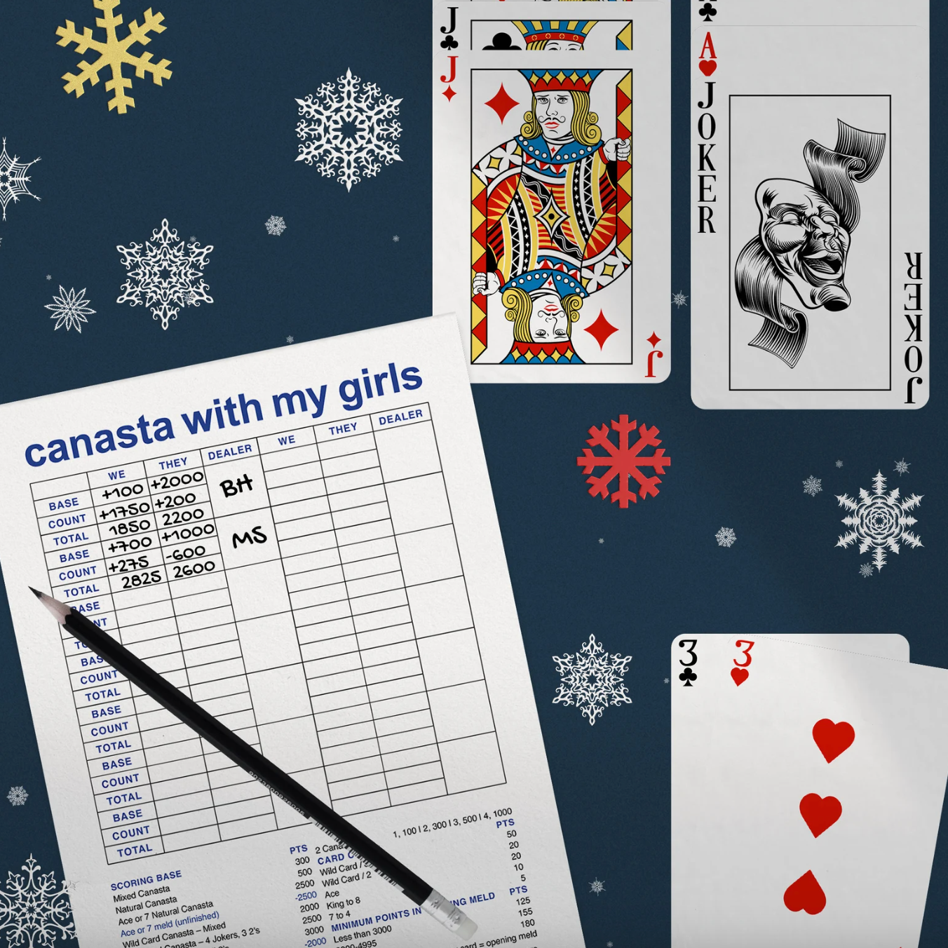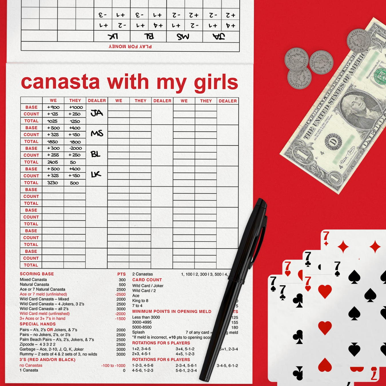 Large: 8 1/2 x 11- Canasta Score Pad includes one pad (50 sheets), on text weight paper.