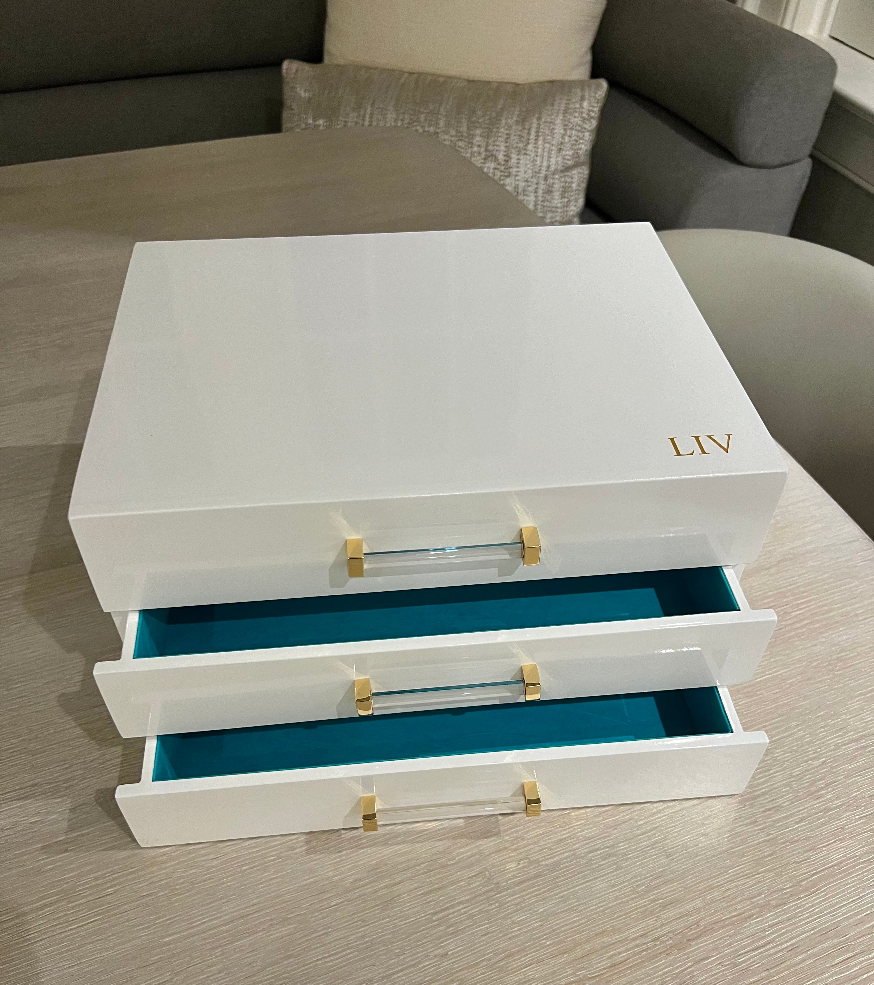 High Gloss Jewelry Box With Acrylic Handle Drawers