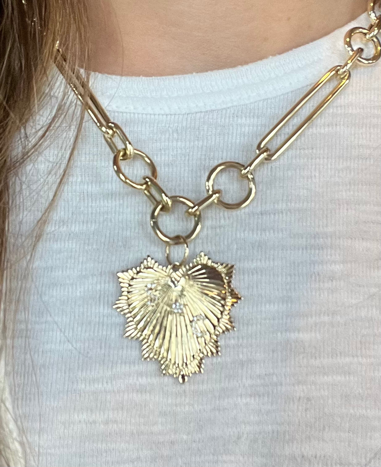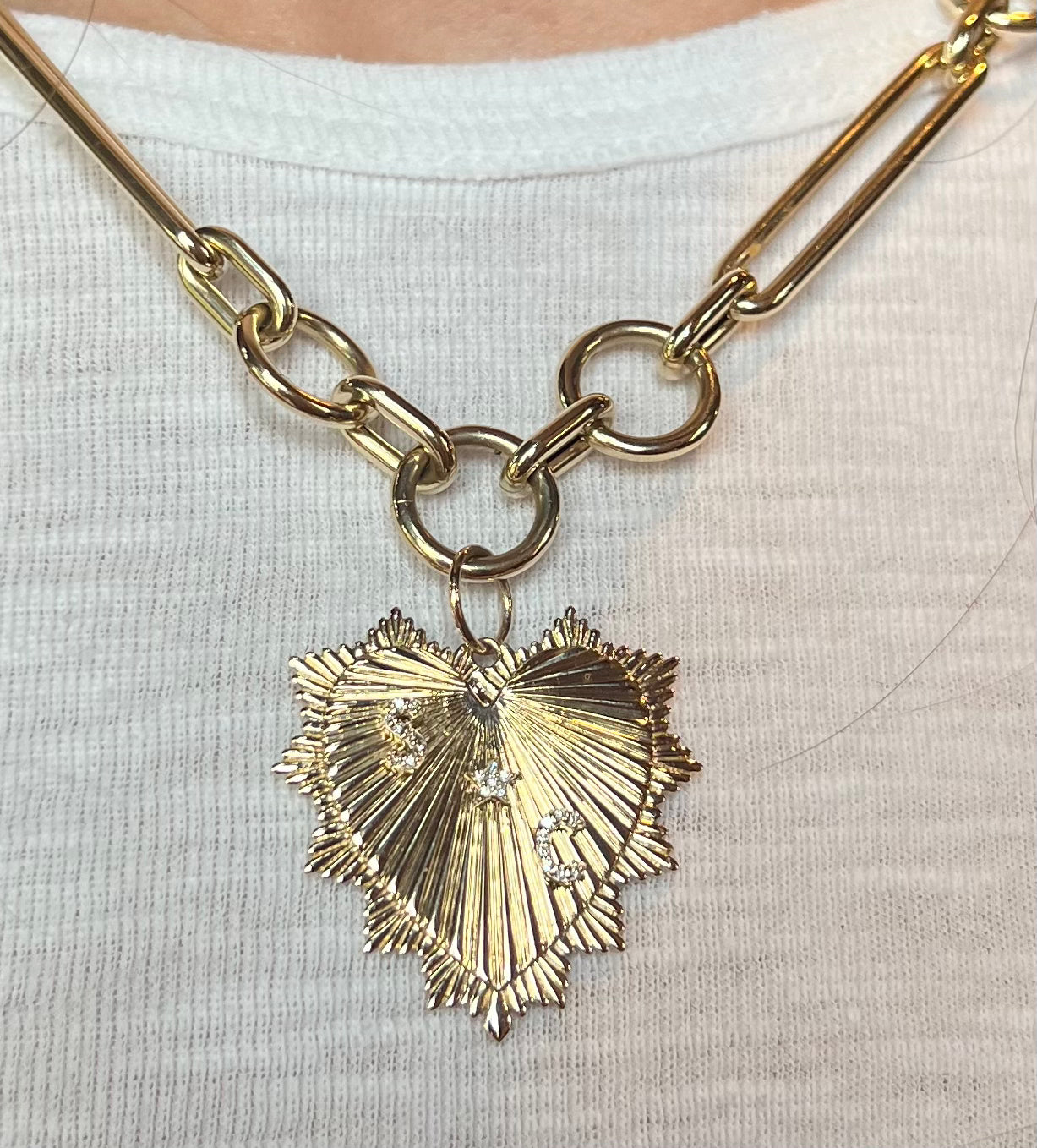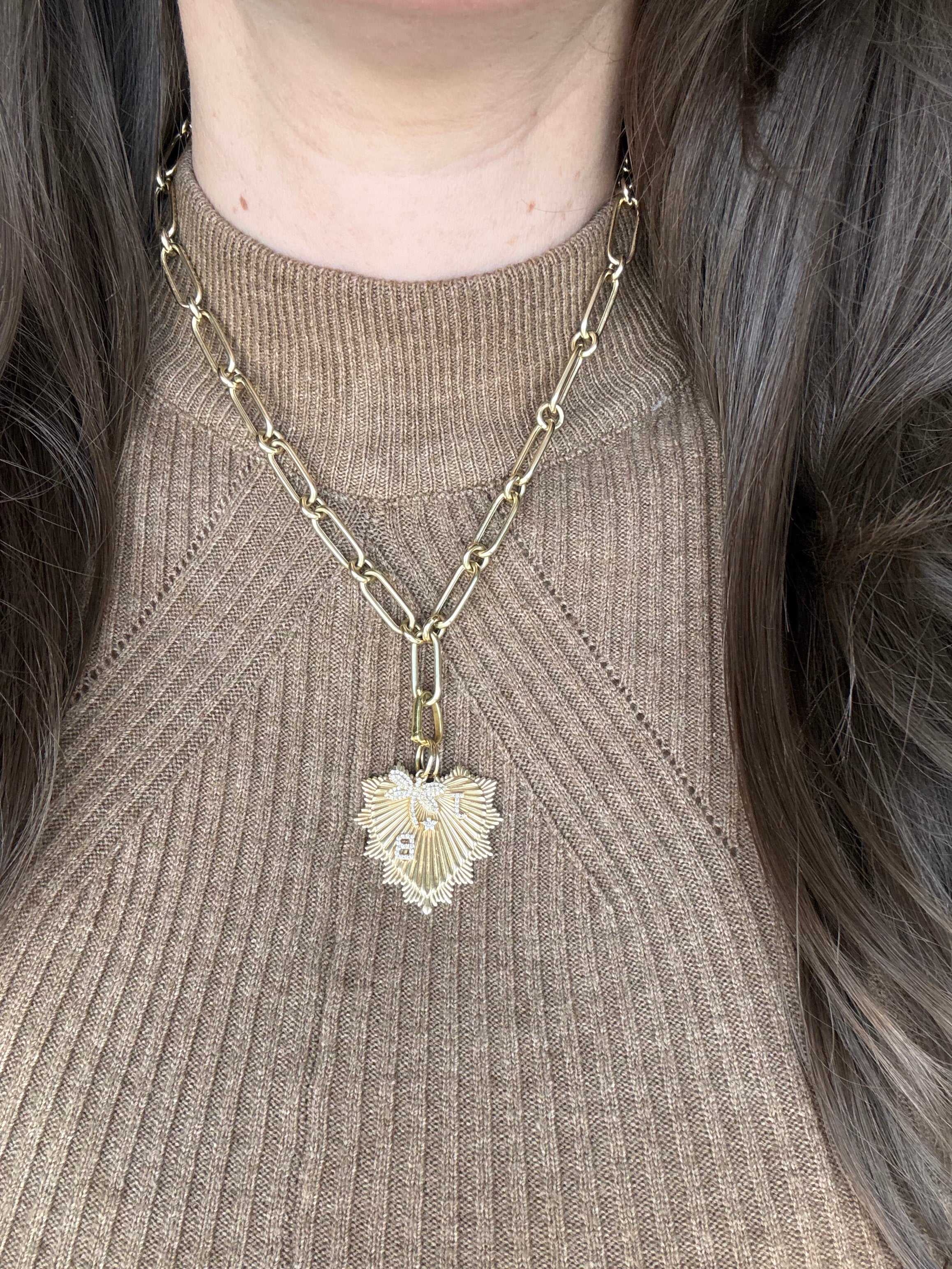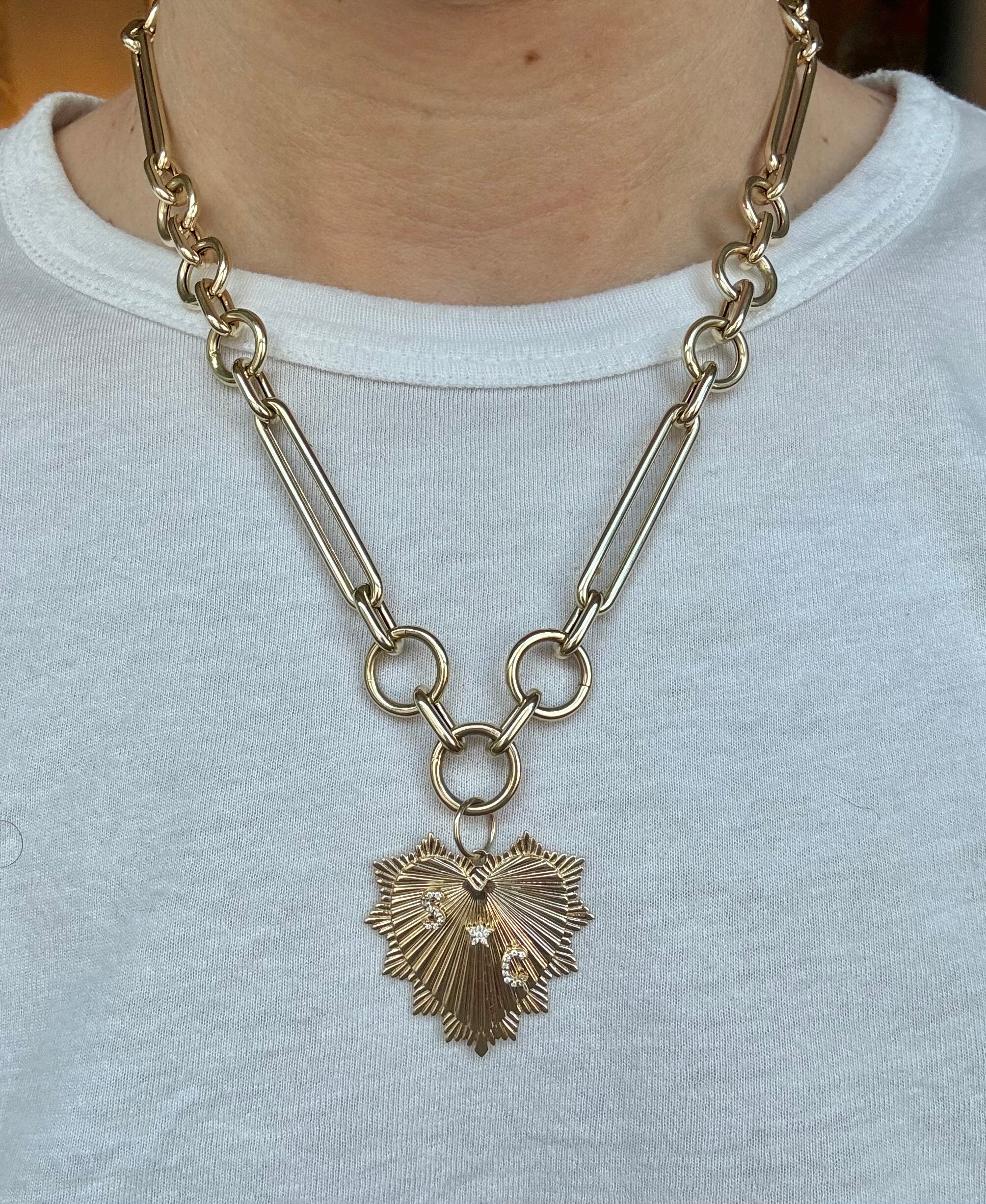 Fluted Yellow Gold Custom Charm and Link Necklace