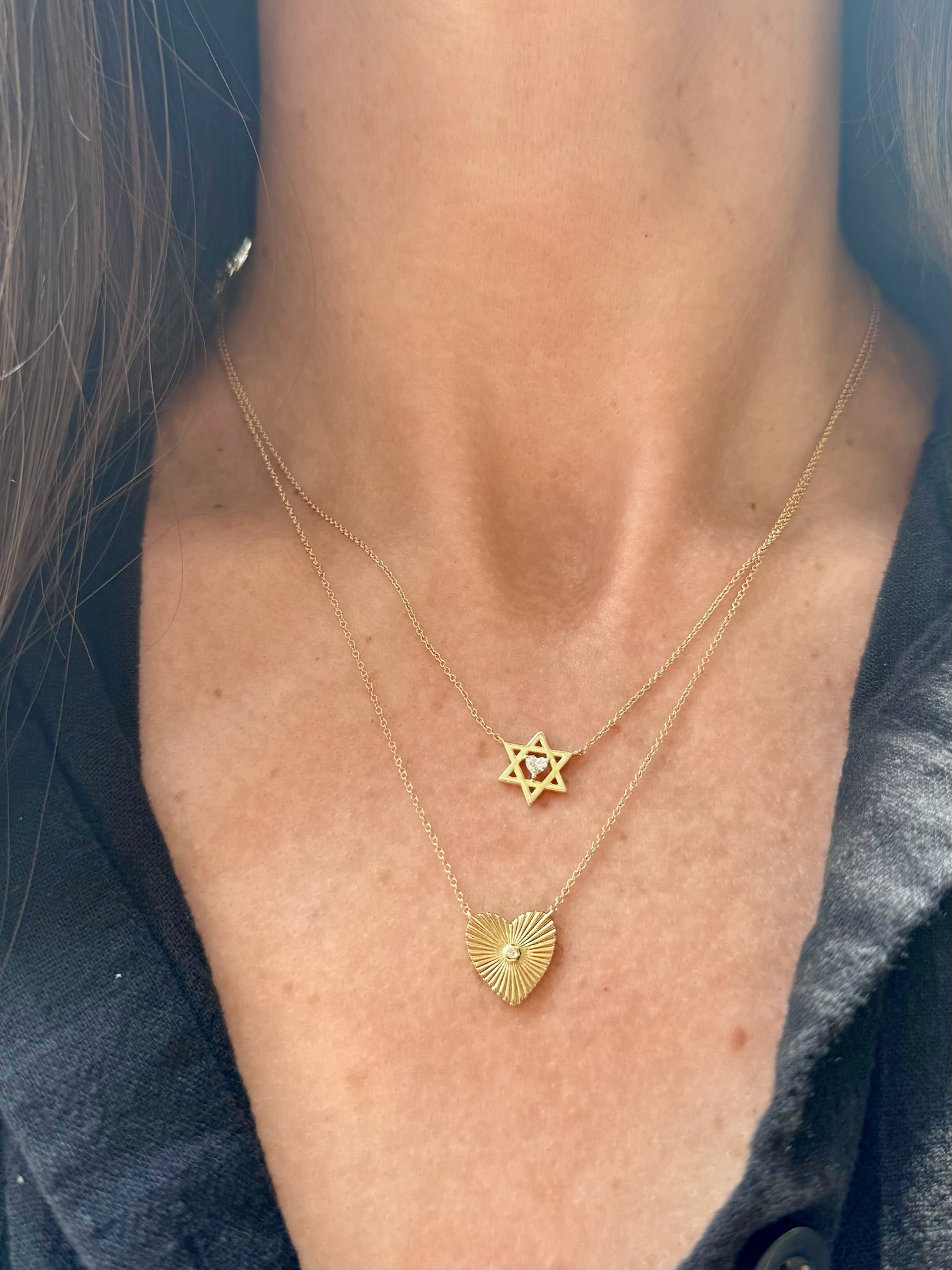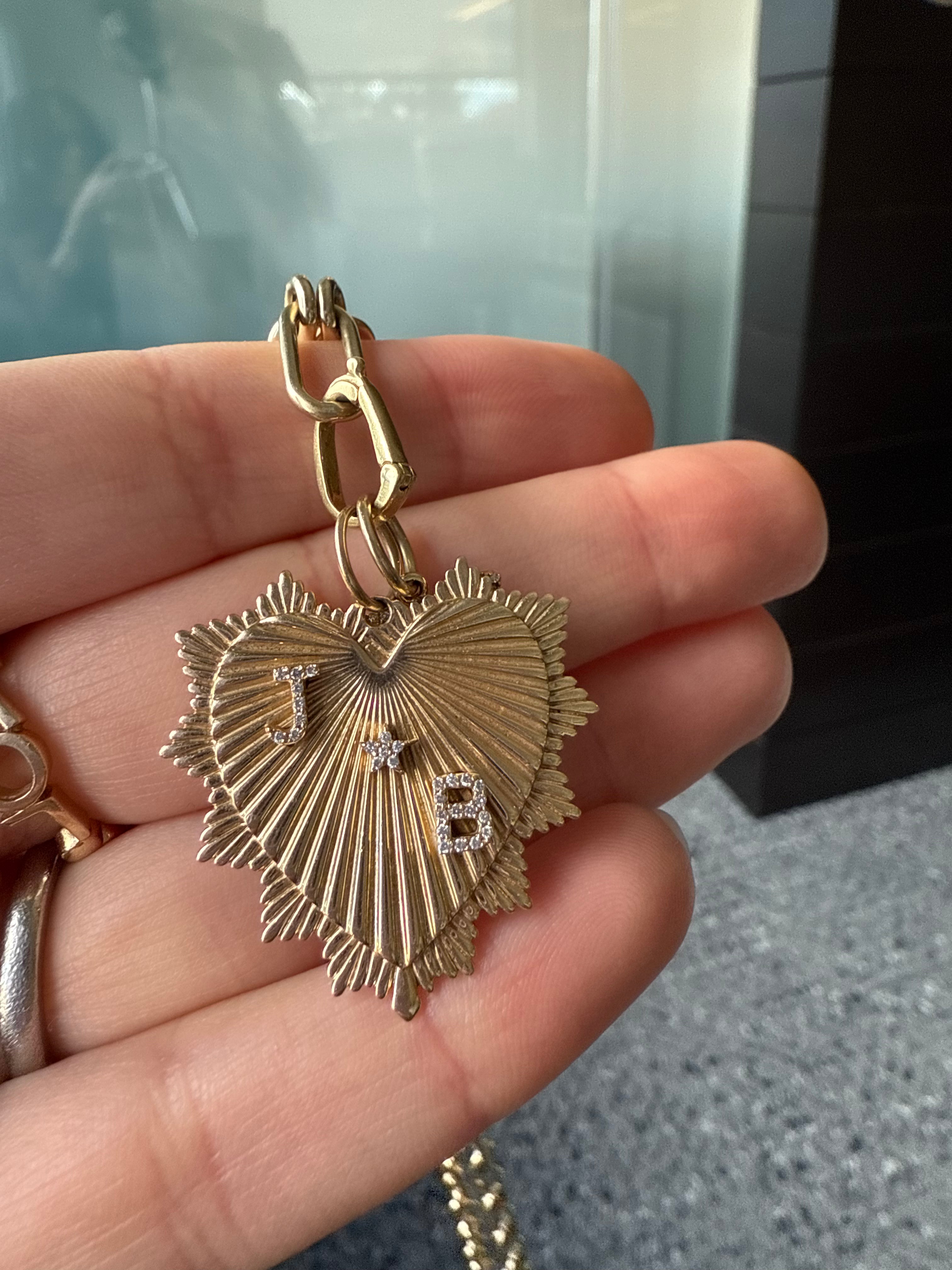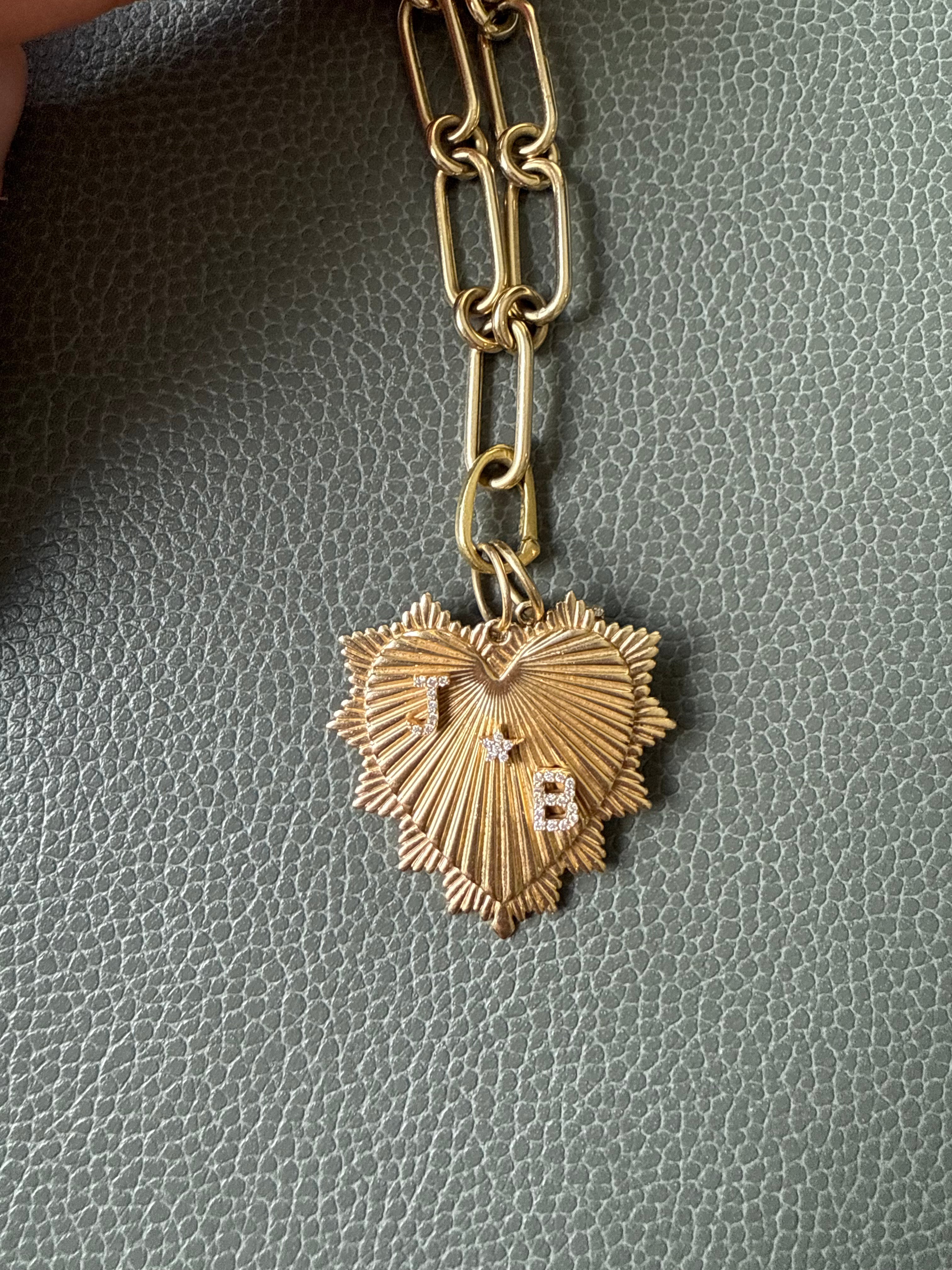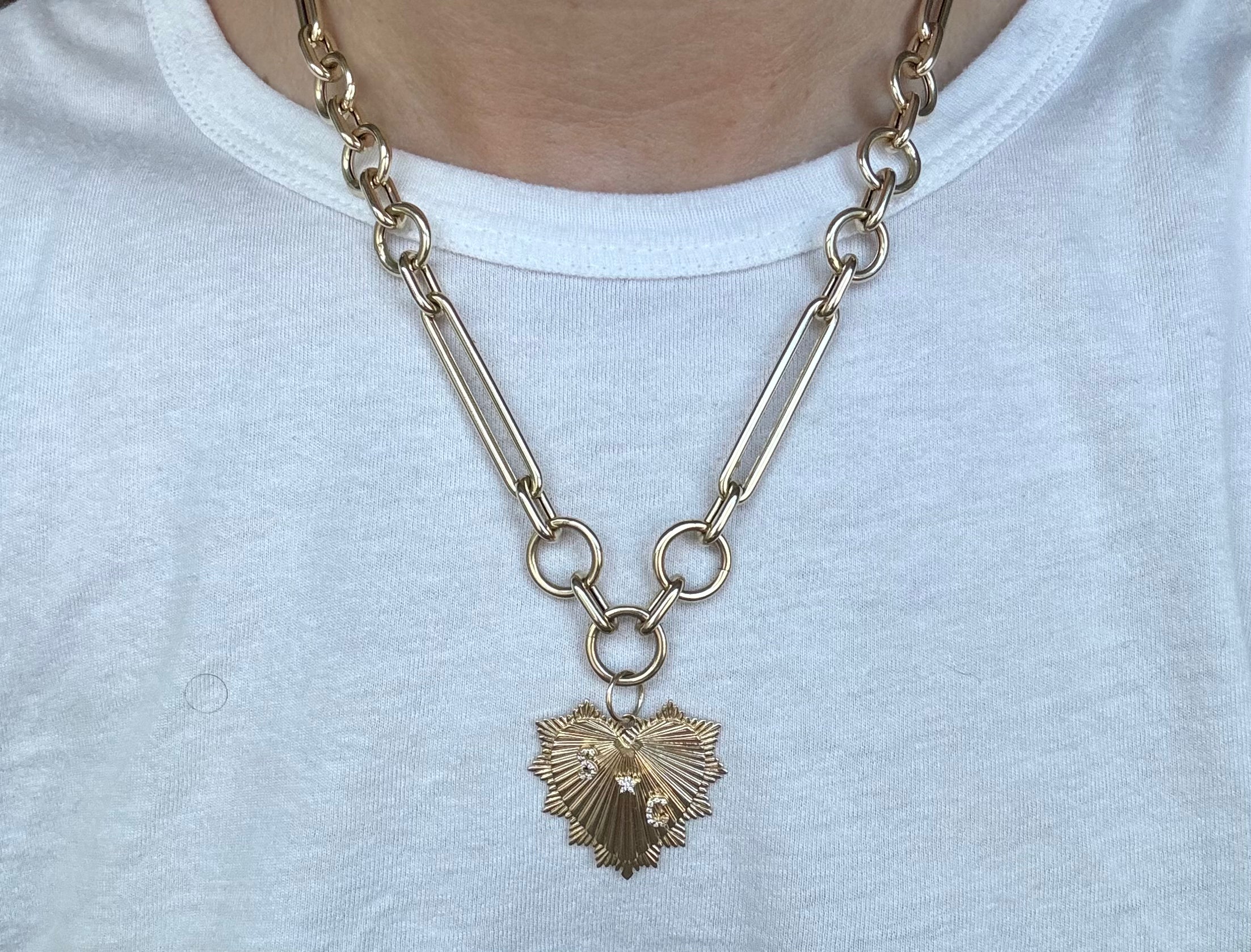 Fluted Yellow Gold Custom Charm and Link Necklace