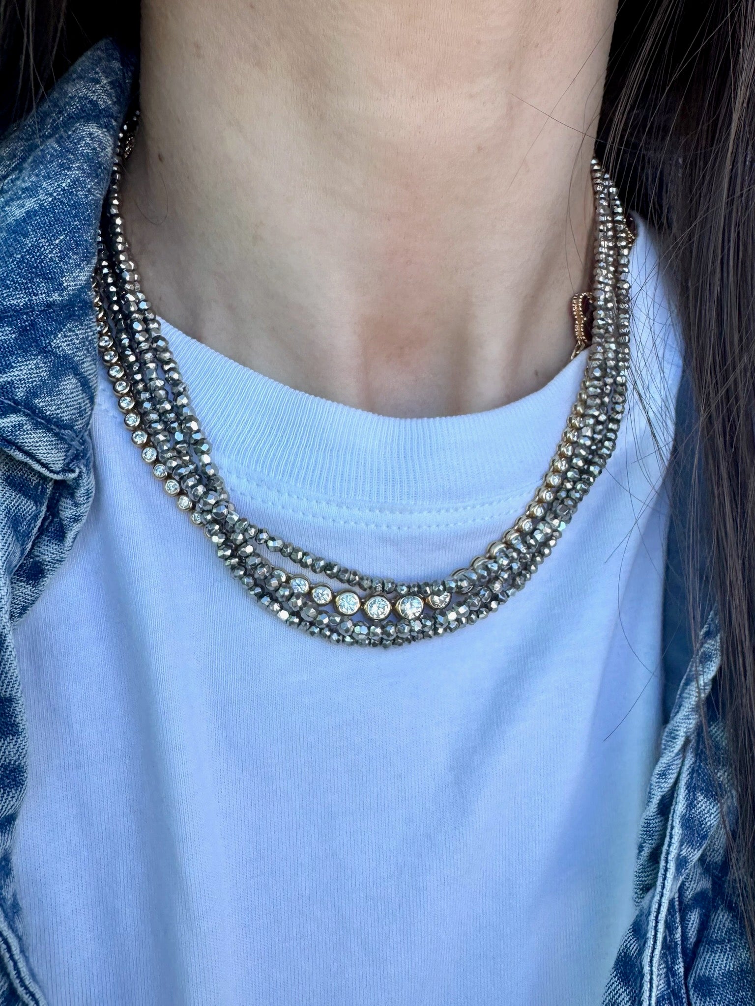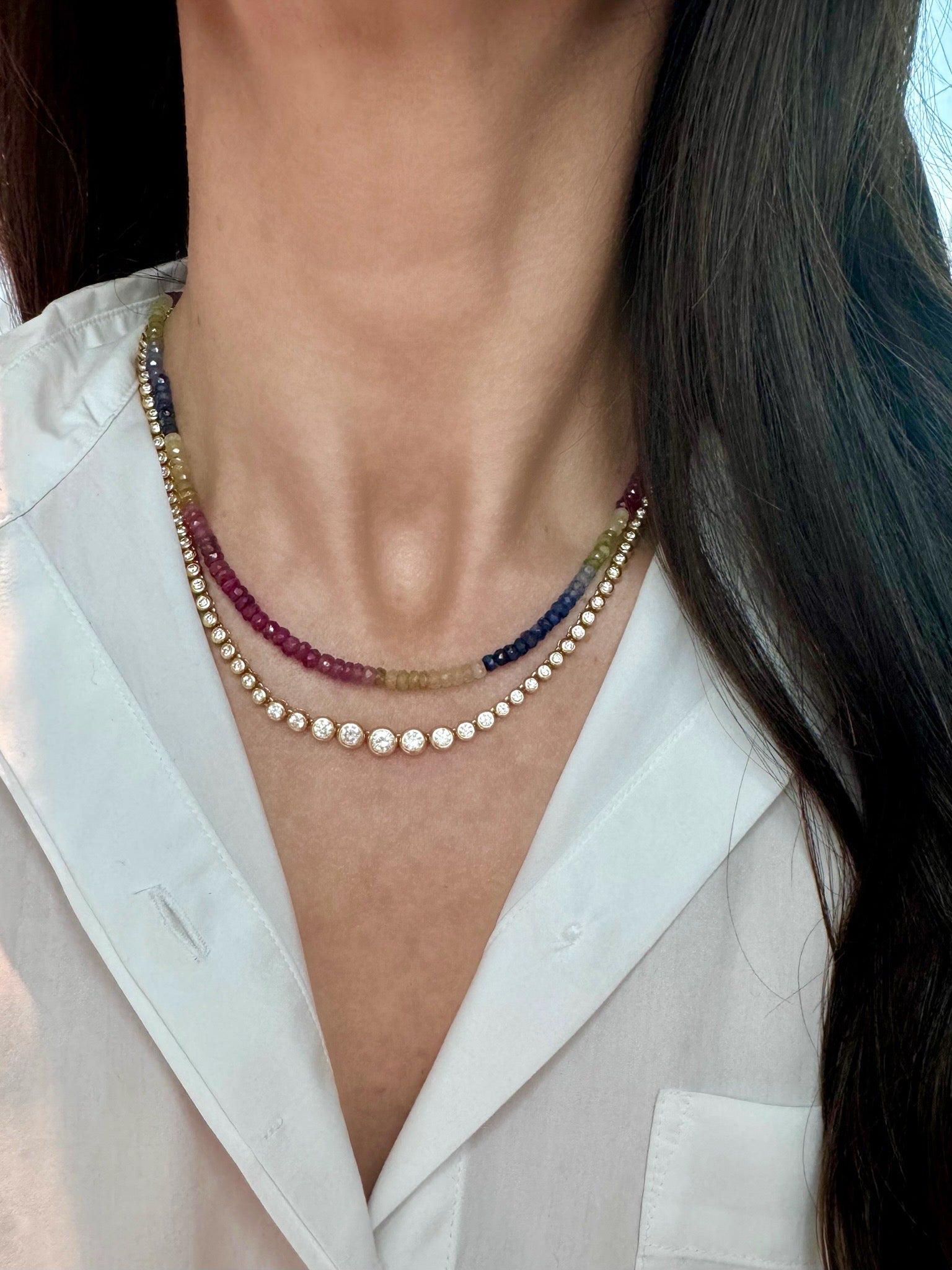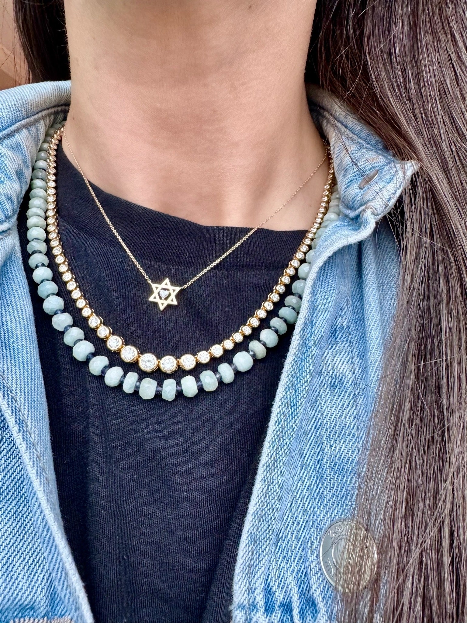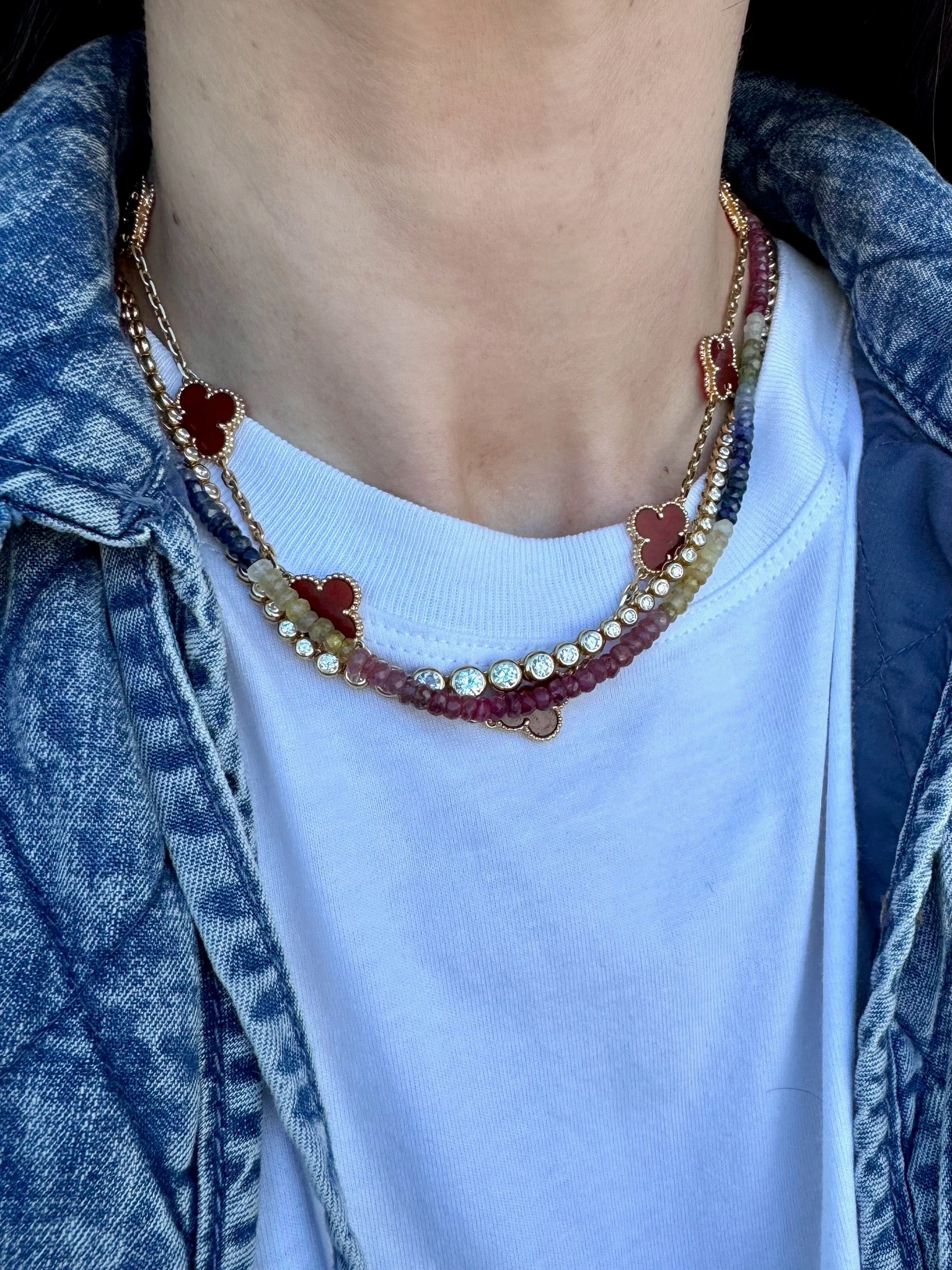 Fluted Yellow Gold Custom Charm and Link Necklace