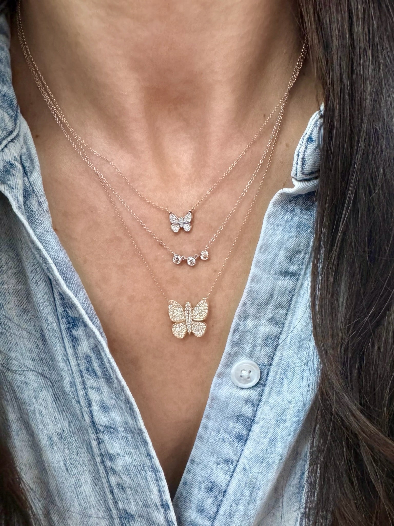 14K Yellow Gold and Diamond Butterfly Necklaces