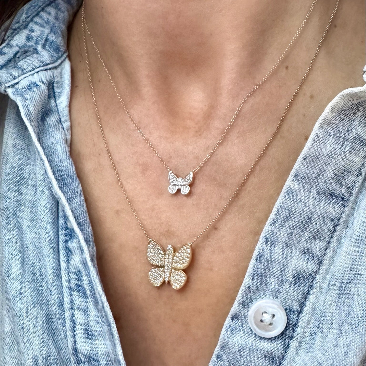 14k Yellow Gold and Diamond Pave Butterfly Necklaces