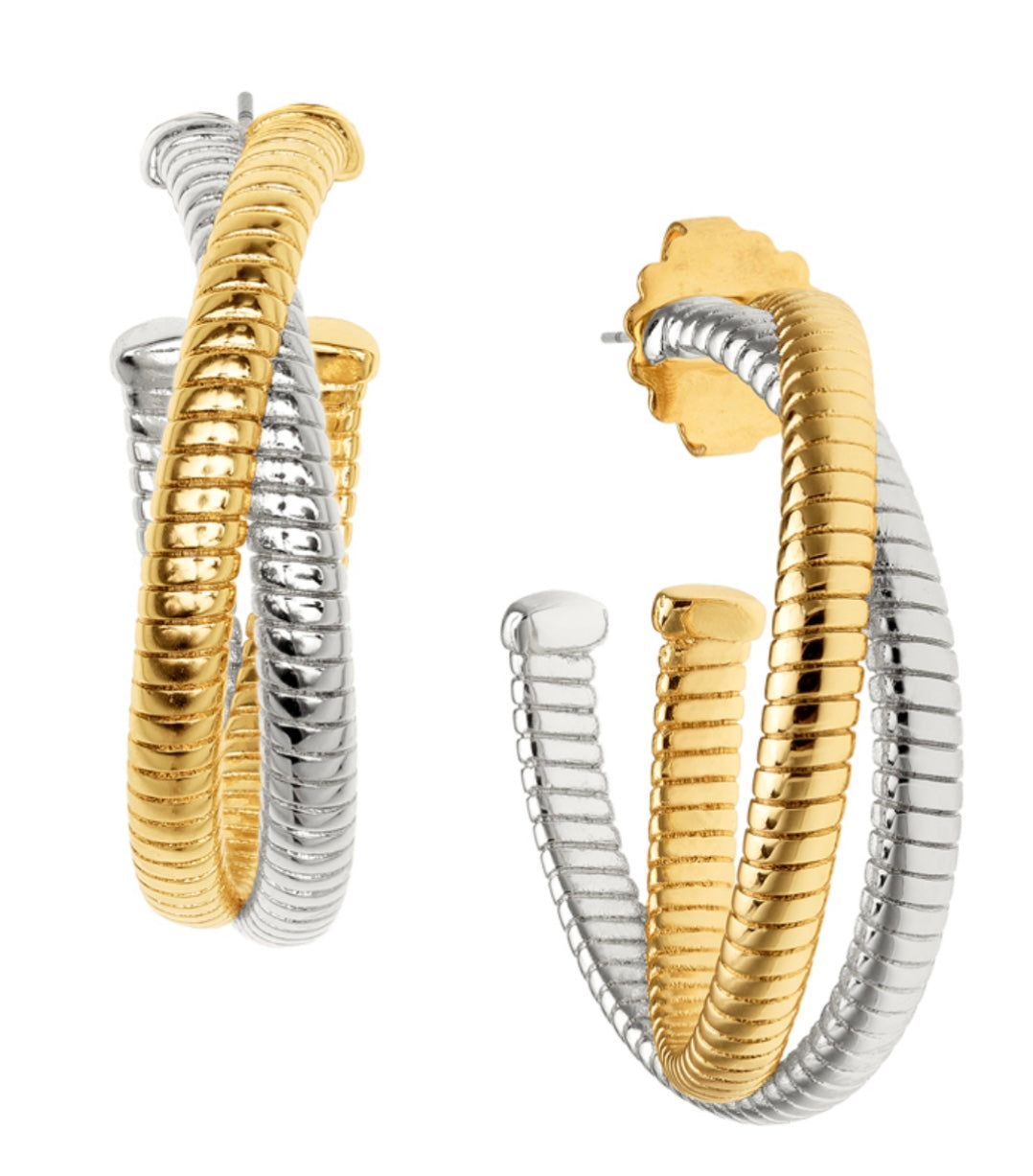 18K gold & Rhodium Plated Bass twist cobra hoop.