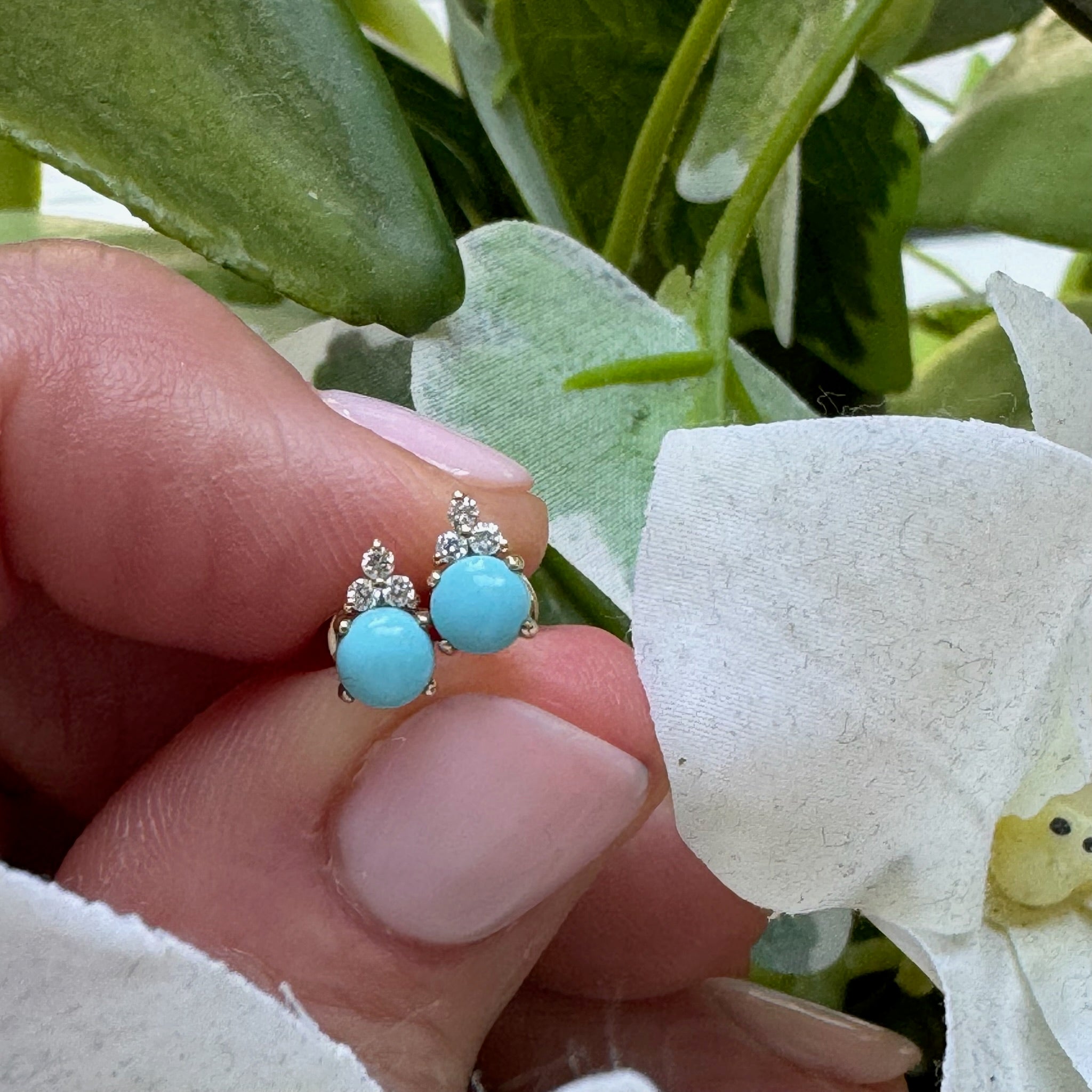14k Yellow Gold Turquoise and Diamond Cluster Stud Earrings.