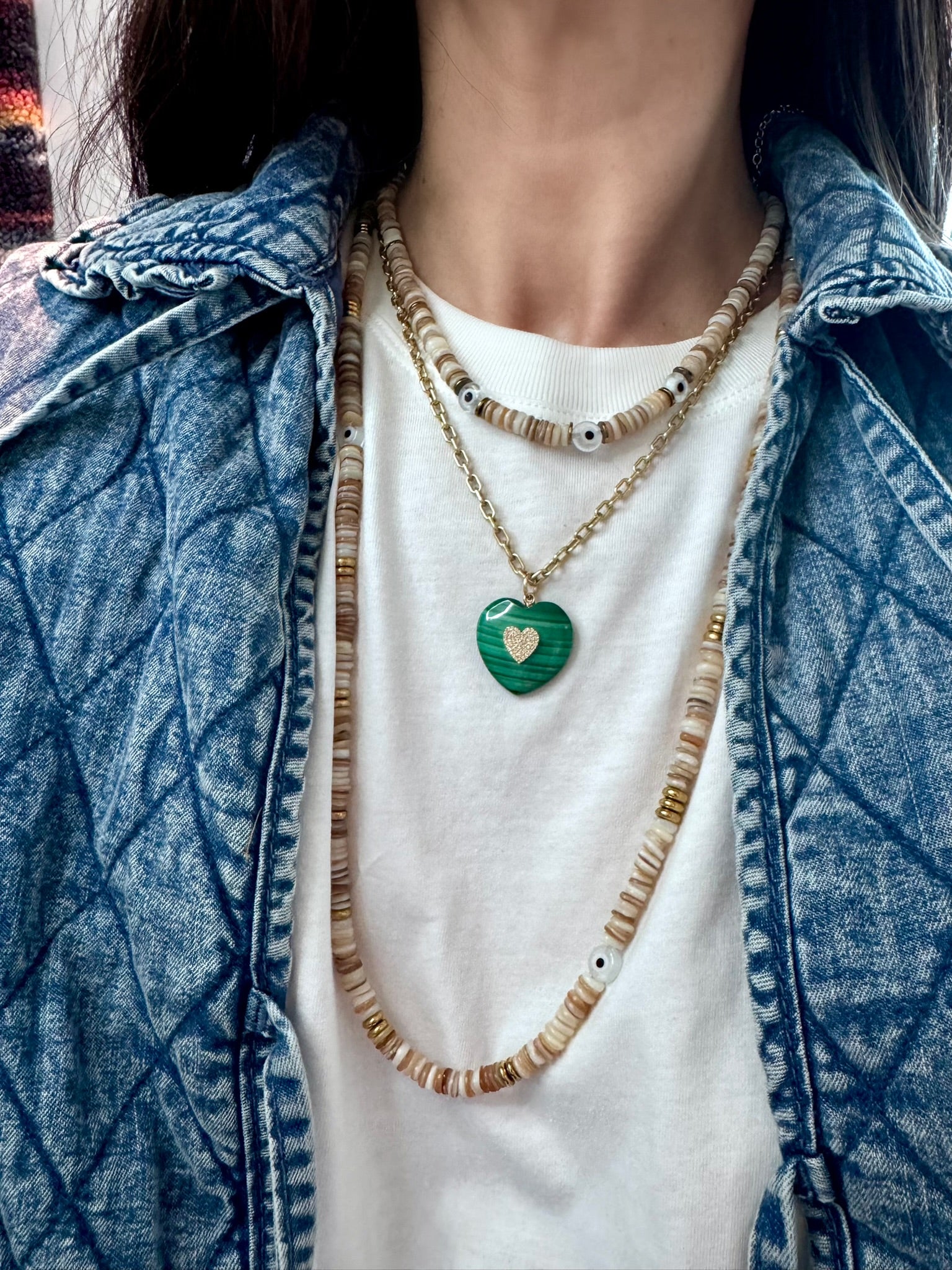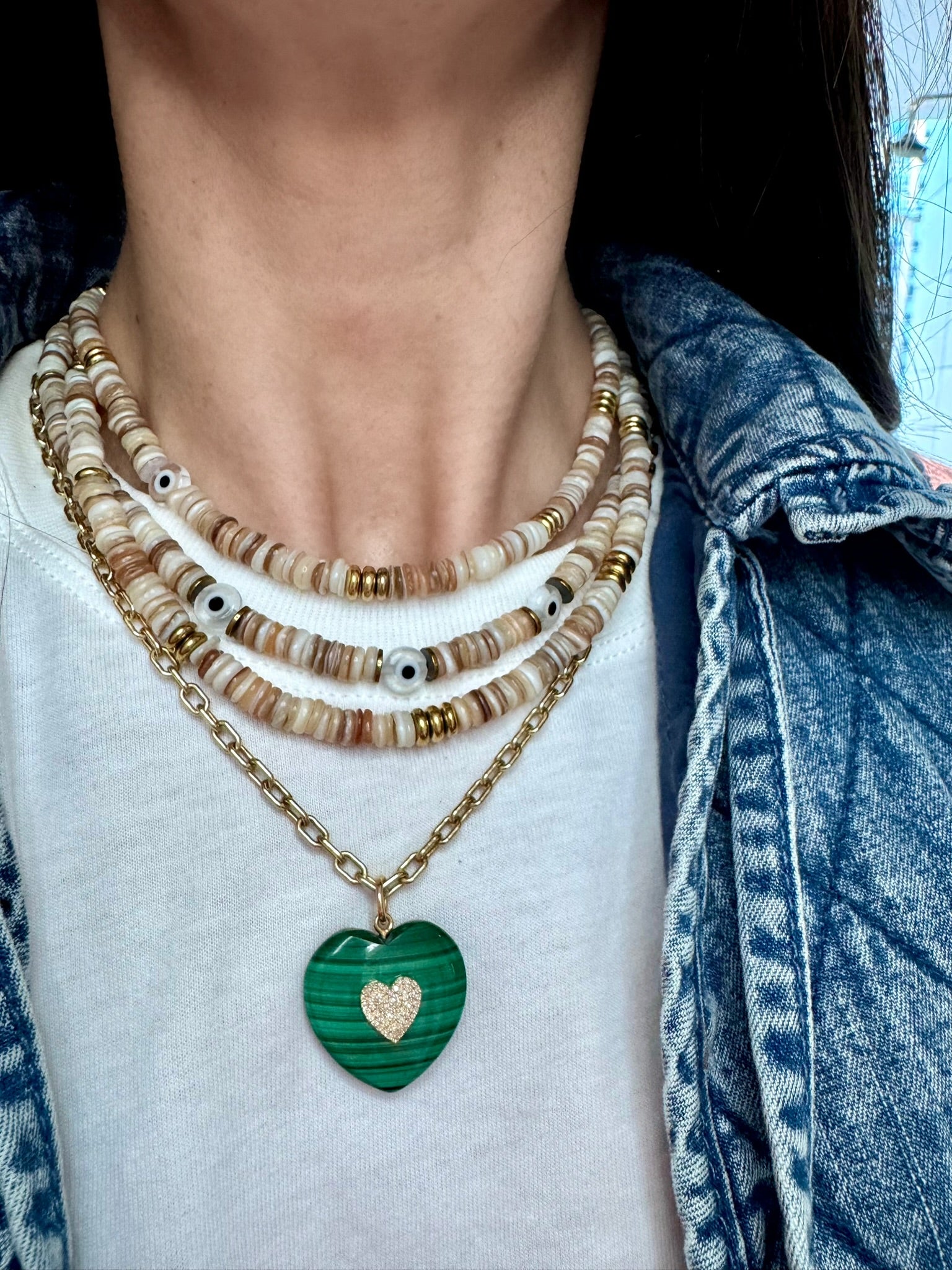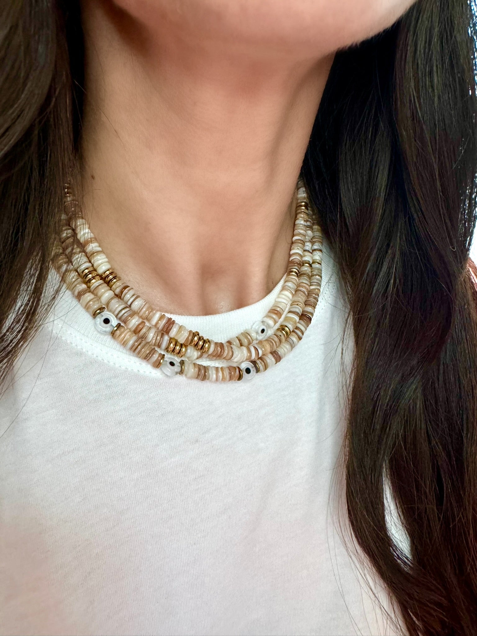 Lungo/Bianca Evil Eye Bead Strands in Beige