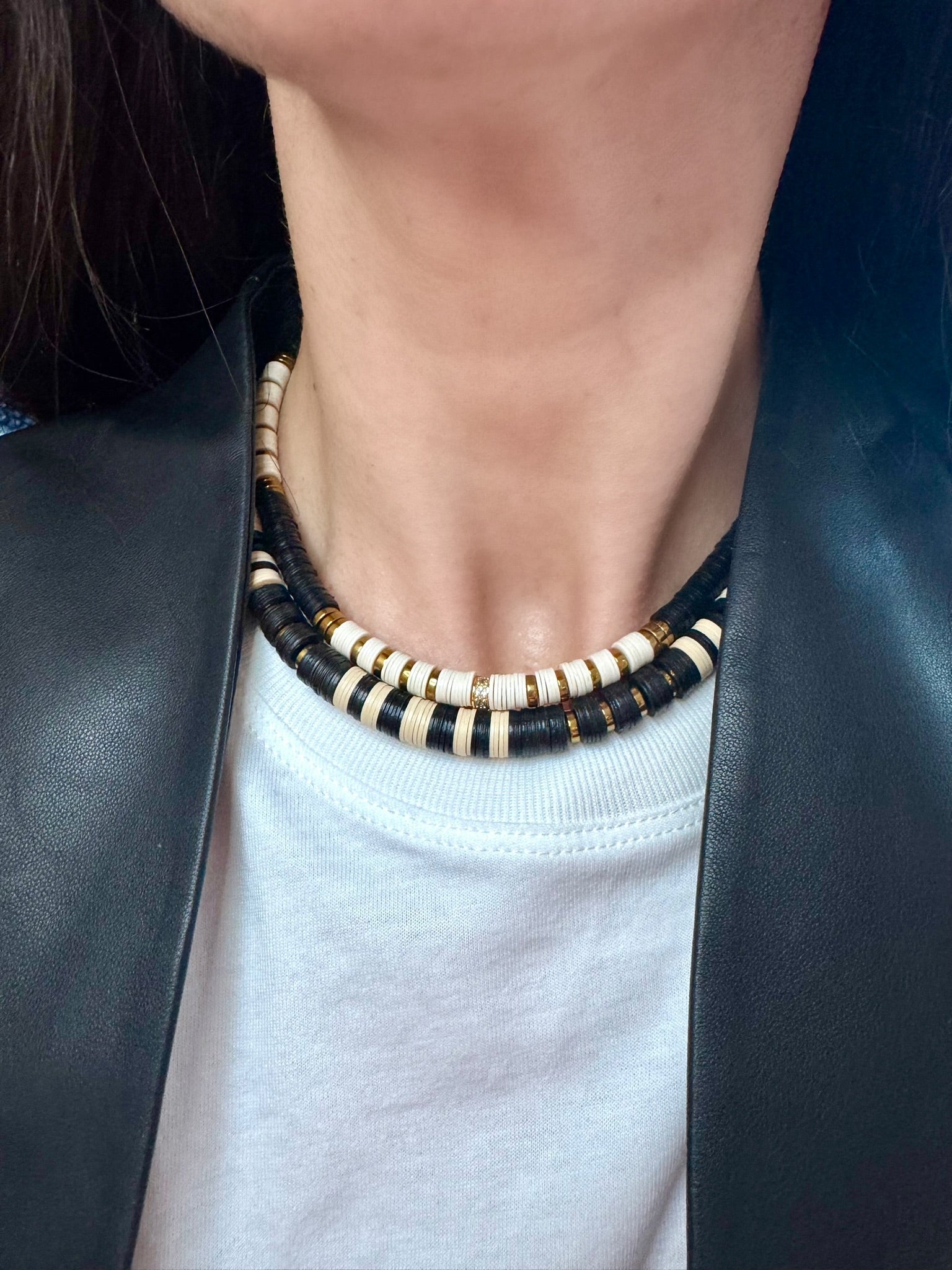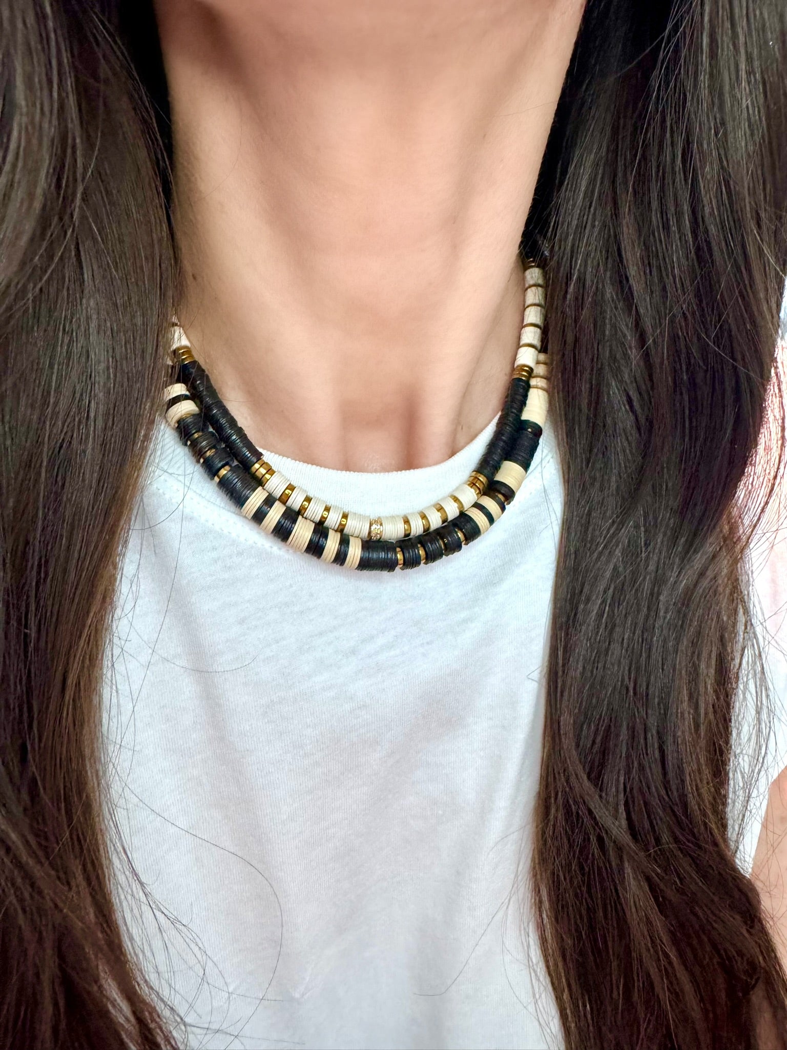 Jaipur Bead Strands in Ecru, Black and Gold