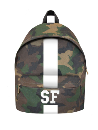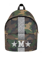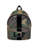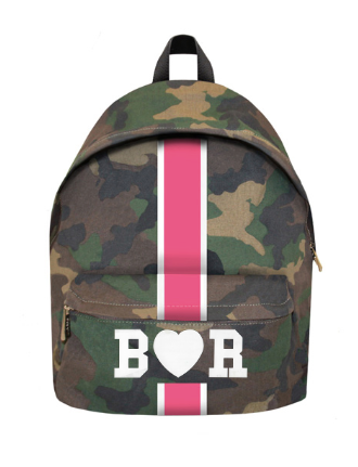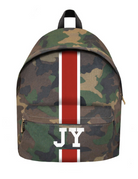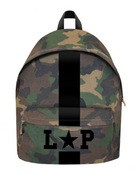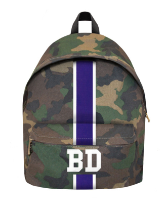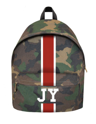 Camouflage backpack customizable with 1-3 letters, ★, &, ♥. Letters shrink with increase of letter count. Available in various colors in Solid, Classica or Doppia styles. Please allow 4-6 weeks for delivery. Colors may vary in availability. Email info@designsthatdonate.com for any questions. Custom orders are not refundable.