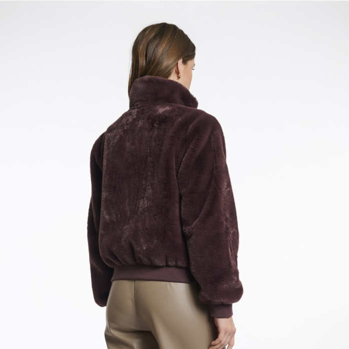 Step out in style with this short faux-fur jacket, designed for maximum comfort and fashion. This exquisite jacket features a hidden zipper closure, a stand-up collar with a detailed strap, and convenient side slit pockets with zipper closures. The elasticized cuffs on the sleeves and bottom hem ensure a snug fit. Embrace warmth and elegance with this stunning jacket and make heads turn wherever you go.