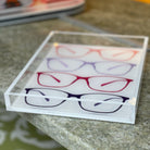 Our 7 X 9 glasses tray is the perfect spot for your extra glasses & sunglasses. Available in black & white, or colors.