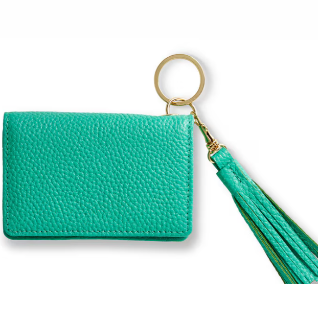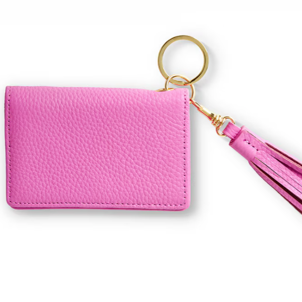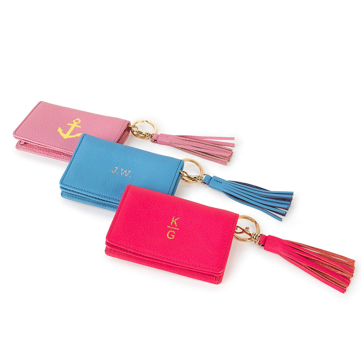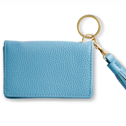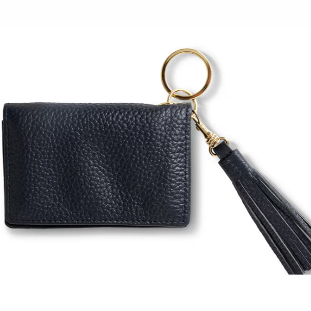 This leather Keychain Wallet features a clear card-holder for easy access to your ID and keychain to attach your keys to. Everything you need in one!