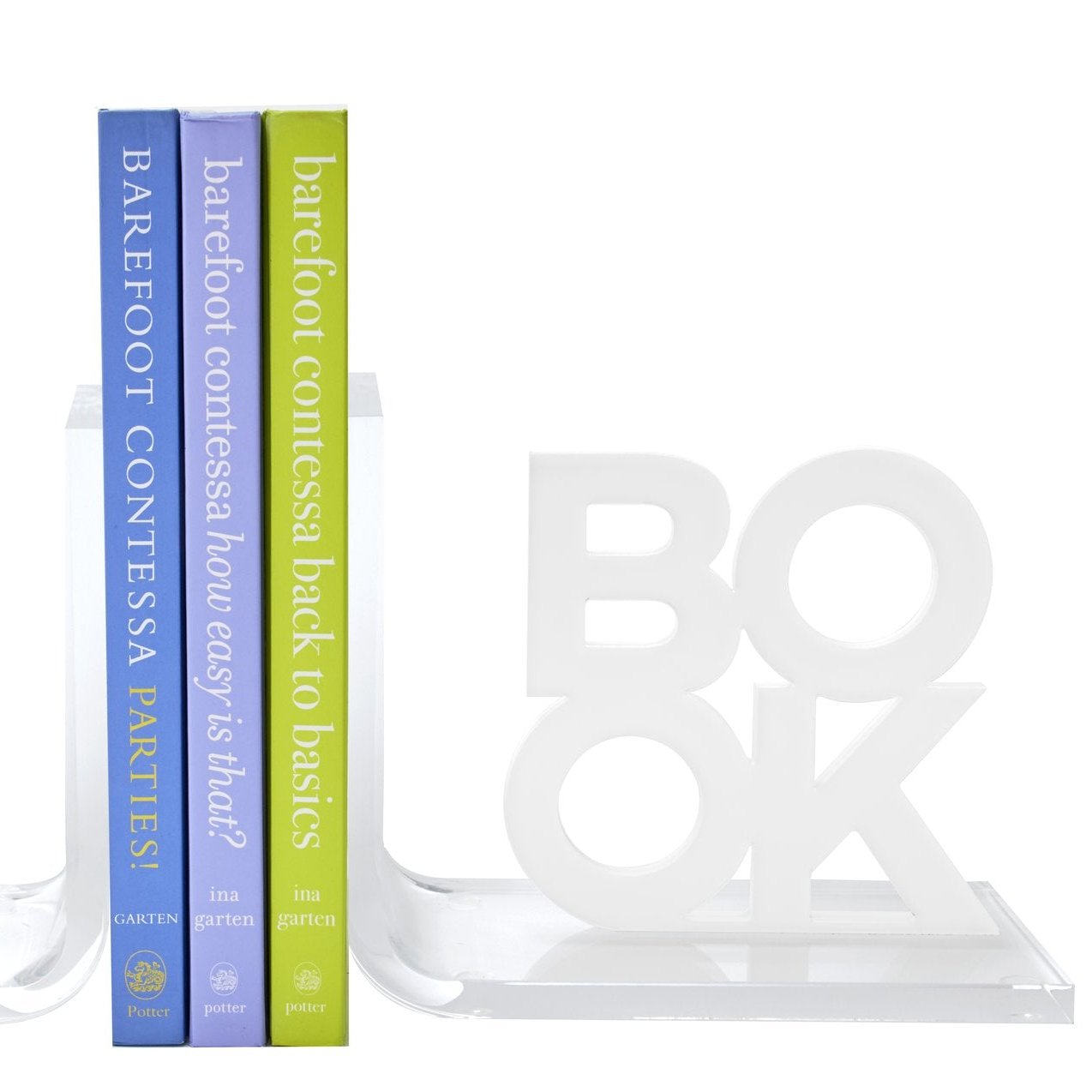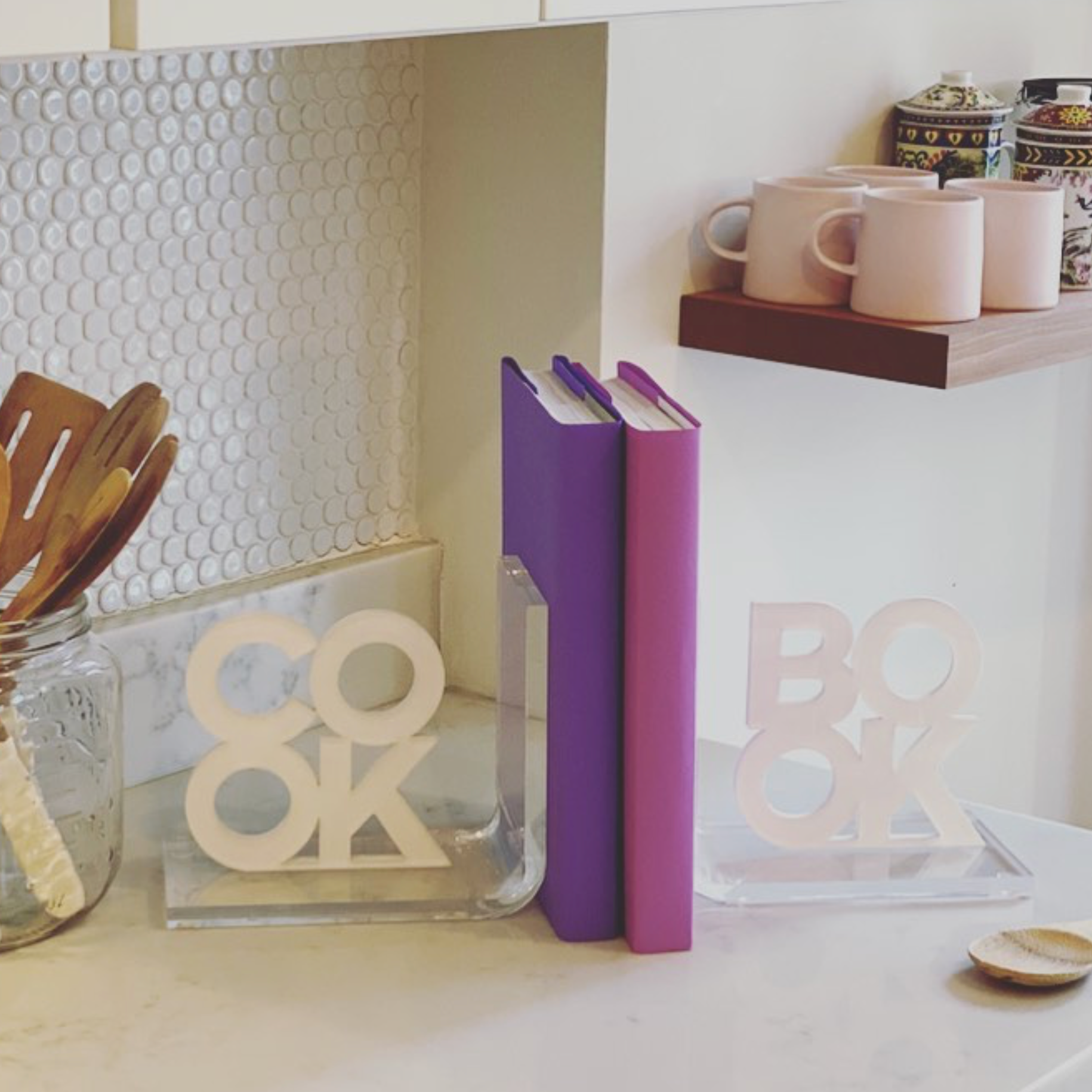 Cook Book White and Clear Lucite Book Ends. The perfect gift for the cook in your life!