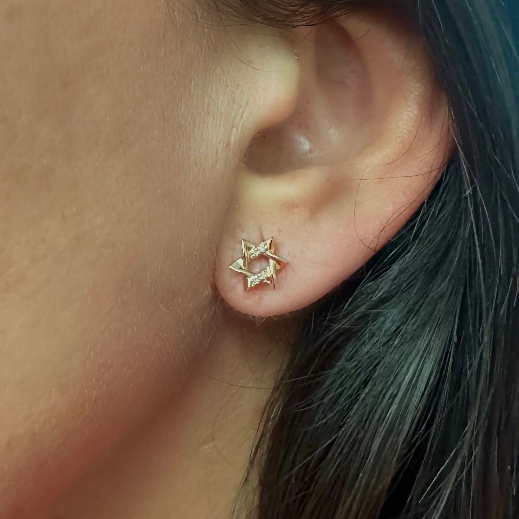14k Yellow Gold and Diamond Star of David Stud Earrings.