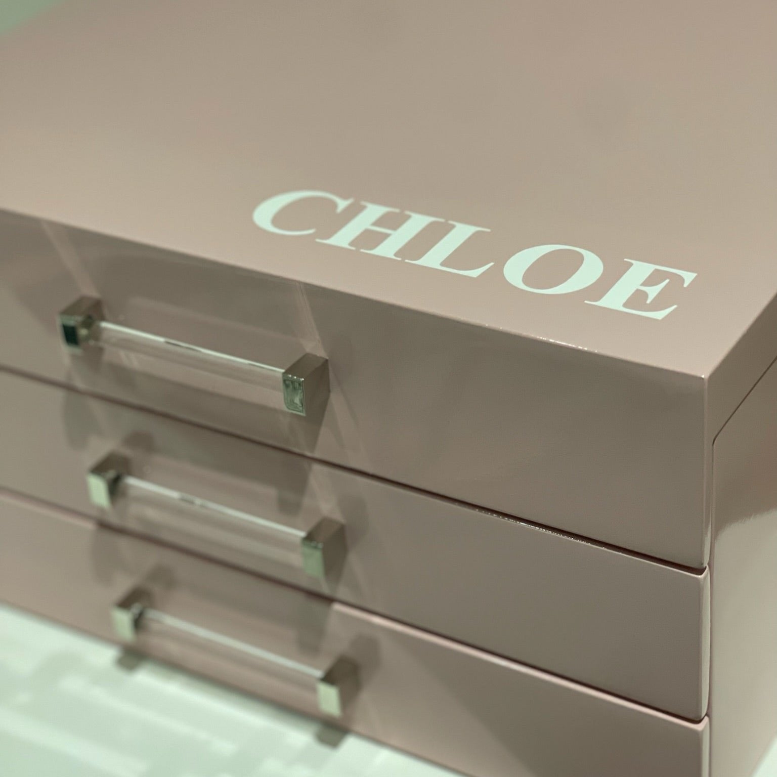 High Gloss Jewelry Box With Acrylic Handle Drawers