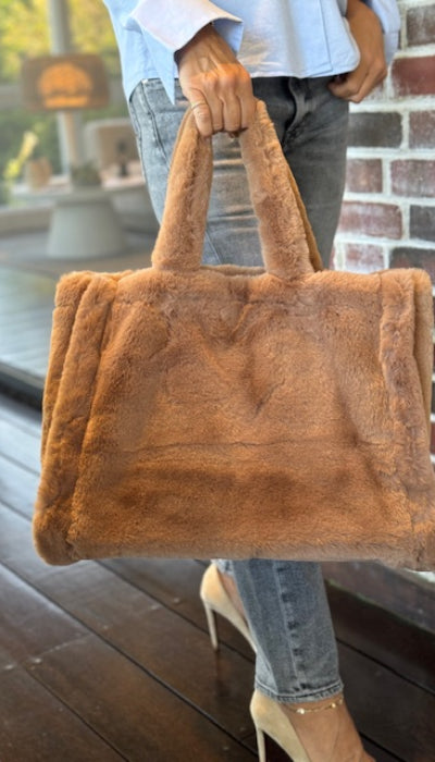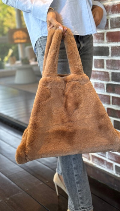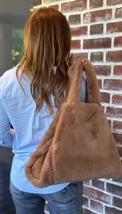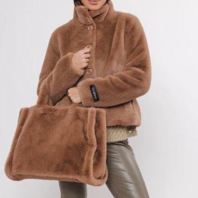 Stylish twig faux fur shopper. This super soft shopper features two short top handles and a snap-fastening at open top. Perfect bag to finish your look and fit your essentials.