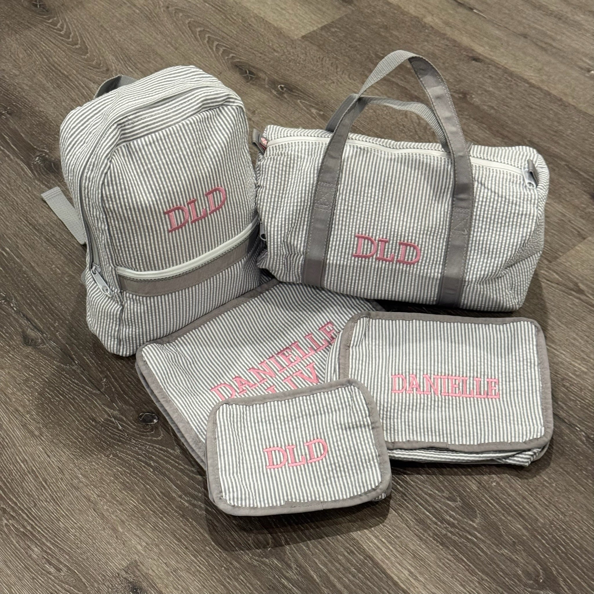The weekender duffle is a favorite for all families on the go. They come with a shoulder strap for easier travel and a side zipper pocket to hold smaller items. Adorable alone, or mix and match with our backpack and packing cubes.